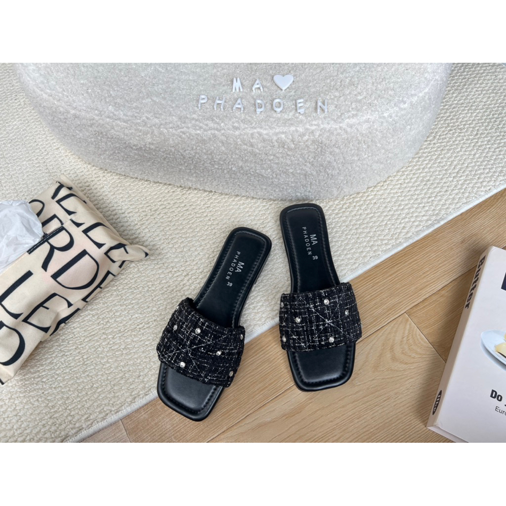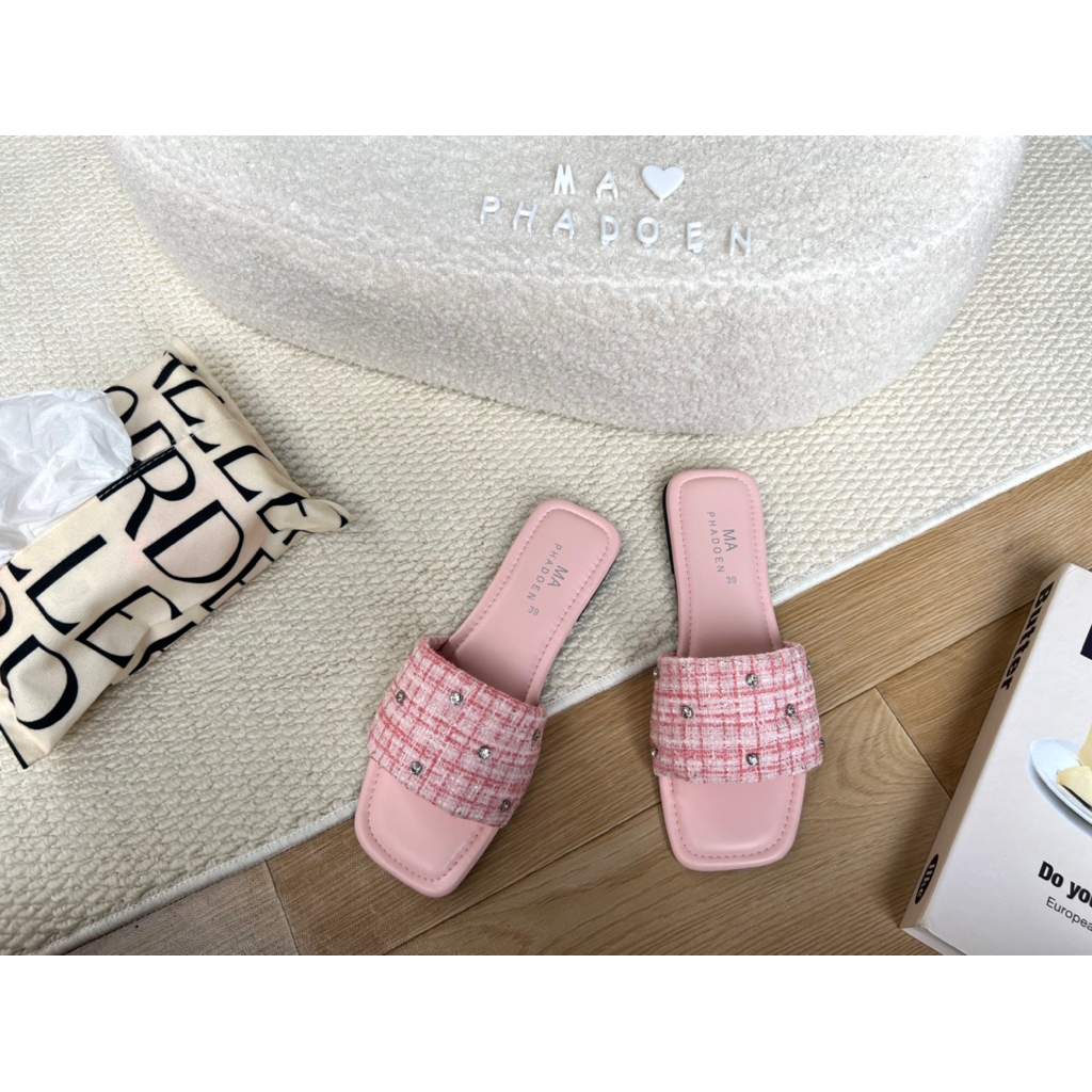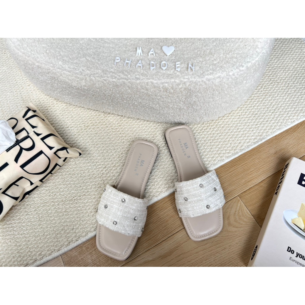 รองเท้าแตะแบบสวม ผ้าทวิตติดเพชร พื้นหนานุ่มเป็นพิเศษ น่ารักมากค่ะ