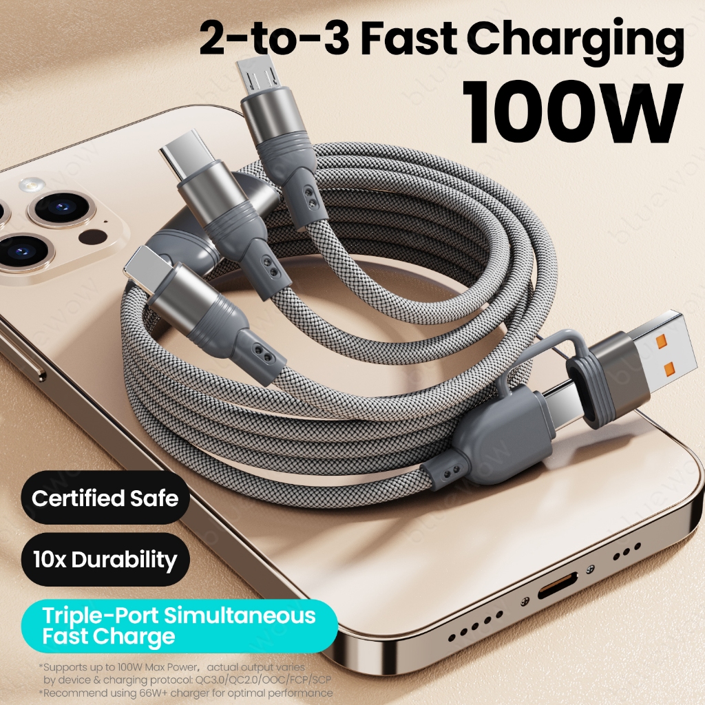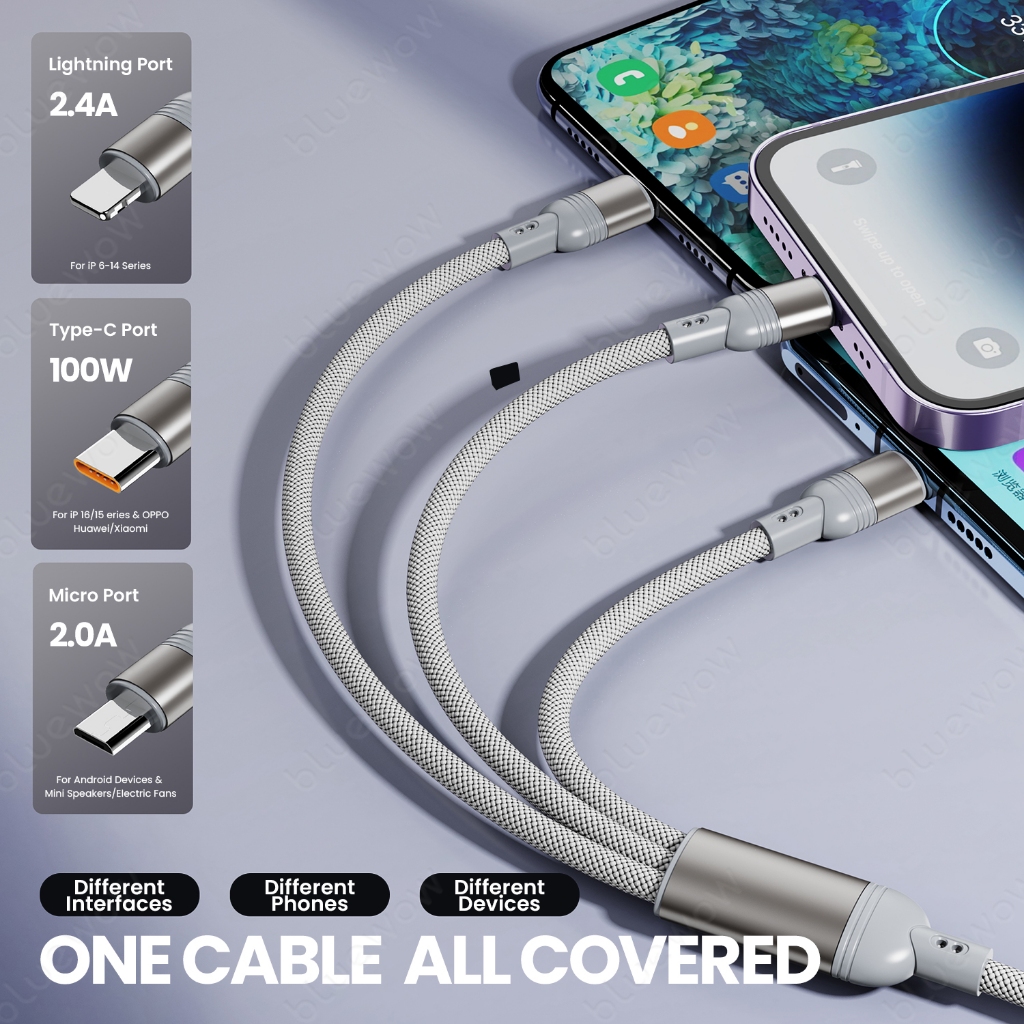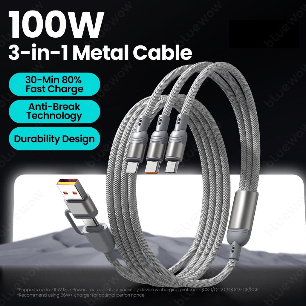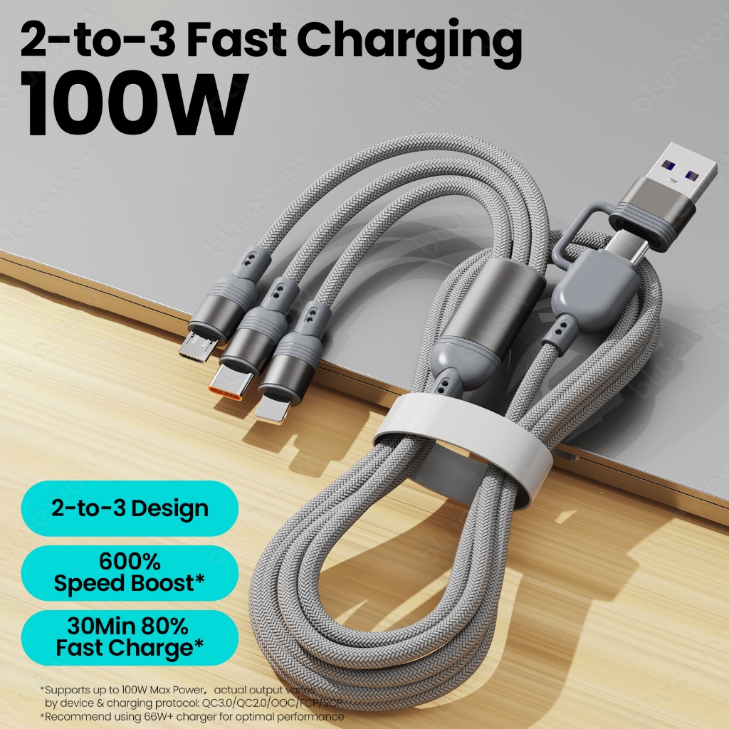 BlueWow 100W Fast Charger PD Quick CHARGING 2-to-3 Fast CHARGING CABLE USB Type C สาย1.2m