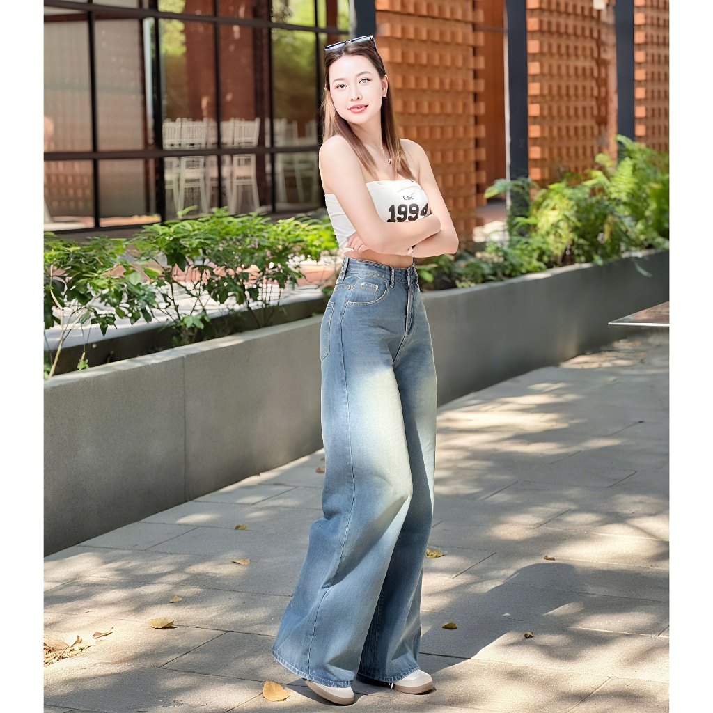 กางเกงยีนส์ ขากระบอกใหญ่ กางเกงยีนส์วินเทจ ทรงสวย ทรงหลวม