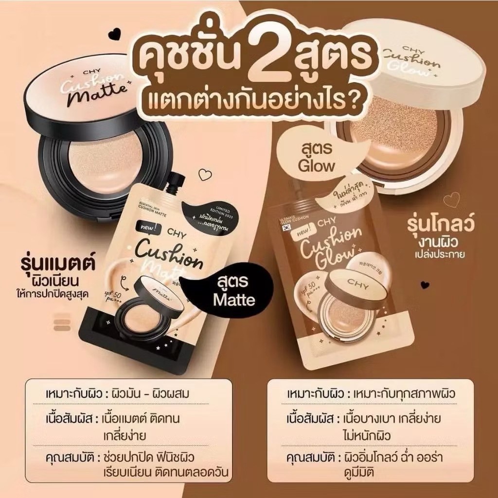 CHY คุชชั่น2สูตร แมทท์&ฉ่ำโกลว์ ผิวเนียน เนื้อบางเบา เกลี่ยง่าย เบลอรูขุมขน 7กรัม