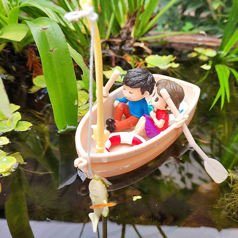 ? 【การสร้างแบบจําลองที่สร้างสรรค์ งานฉลองภาพบําบัด】ชุดภูมิทัศน์ลอยน้ํา 3 ชิ้นบนผิวน้ําของตู้ปลาผสมผสานเรือแปลกตา ชาวประมงแก่ และแมวน่ารักเข้าด้วยกันอย่างชาญฉลาด ชายชราสวมหมวกและนั่งเงียบ ๆ บนหัวเรือพร้อมกับคันเบ็ดในมือ และเบ็ดก็หย่อนคล้อยเล็กน้อยราวกับรอใ