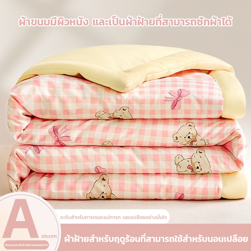 ผ้าห่มใยถั่วเหลือง ผ้าห่มห้องแอร์ งานพรีเมี่ยม มีกุ๊นขอบ ลายยอดนิยม ผ้าห่มแอร์ วัสดุผ้าฝ้ายขนนก นุ่ม เนียน เรียบ ระบายอา