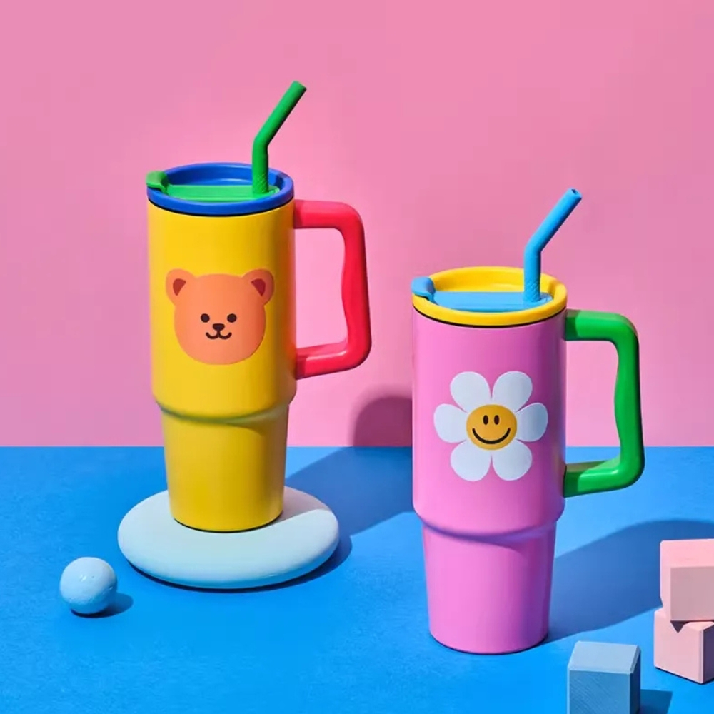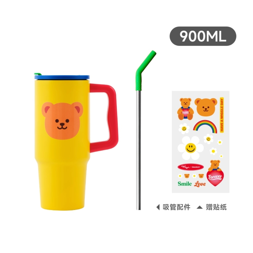 [พร้อมส่ง] แก้วสแตนเลสเก็บความเย็น Glasslock x Wiggle Wiggle Tumbler 900ml มีหูจับ มาพร้อมกับสติกเกอร์และหลอด ใช้สำหรับใส่เครื่องดื่มต่าง ๆ เช่น ชา กาแฟ น้ำผลไม้ ฯลฯ น่ารักสดใสซะจนอยากหยิบแก้วขึ้นมาดื่มน้ำบ่อย ๆ เลย! ของแท้?