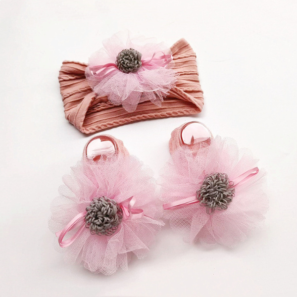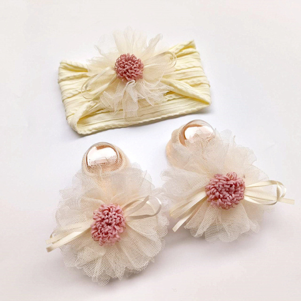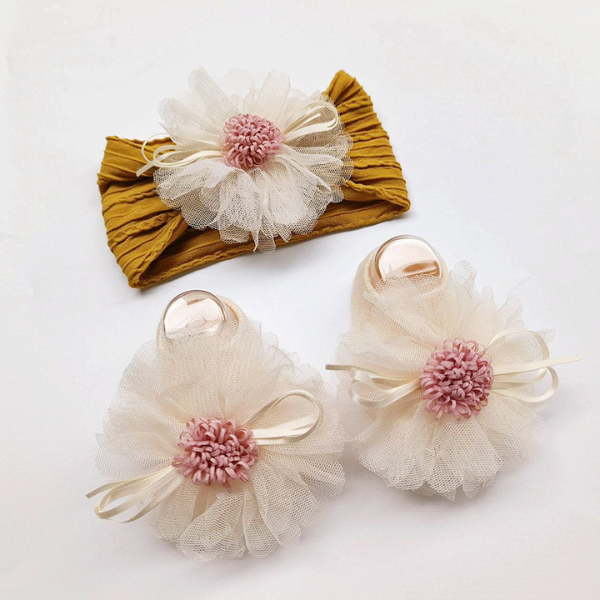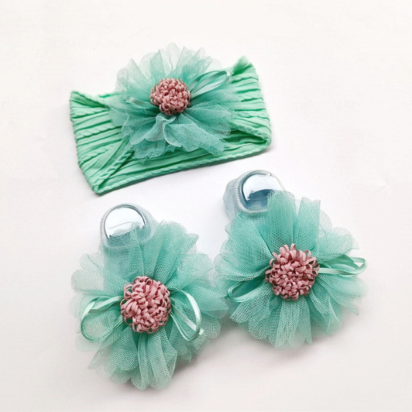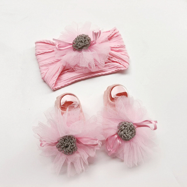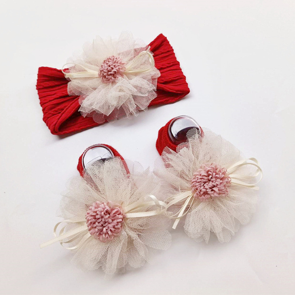 ที่คาดผมและถุงเท้าลายดอกไม้ฟู สีสันสดใส สำหรับเด็กผู