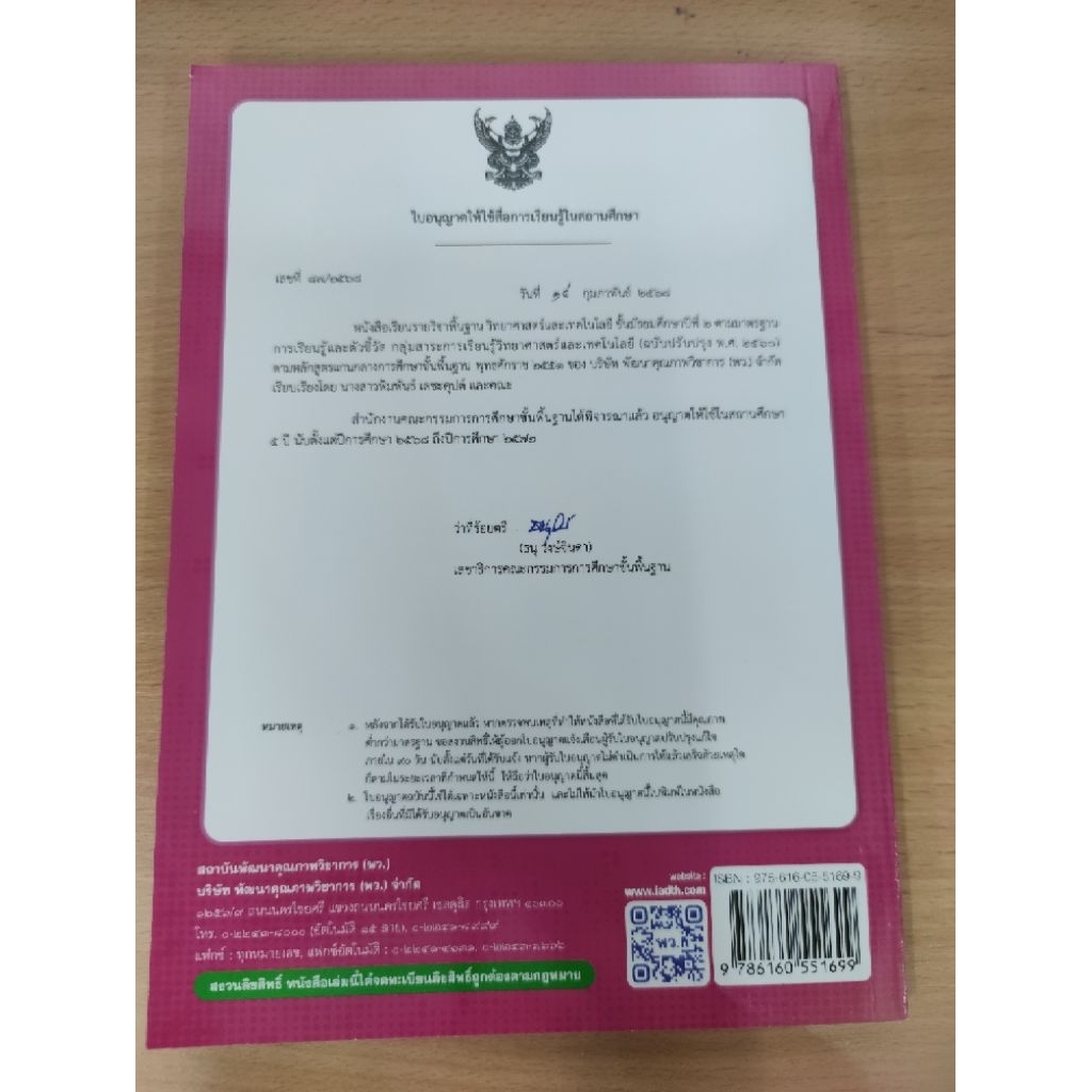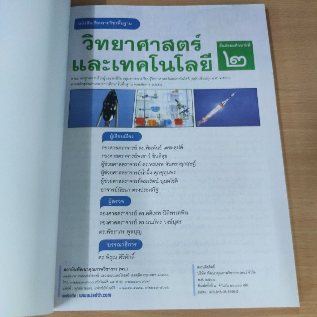 หนังสือเรียนรายวิชาพื้นฐาน วิทยาศาสตร์และเทคโนโลยี ชั้นมัธยมศึกษาปีที่ 2 จัดทำขึ้นตามหลักสูตรแกนกลางการศึกษาขั้นพื้นฐาน พุทธศักราช 2551 (ฉบับปรับปรุง พ.ศ. 2560)
