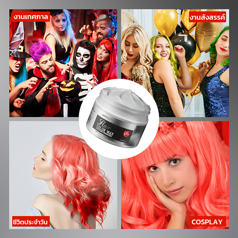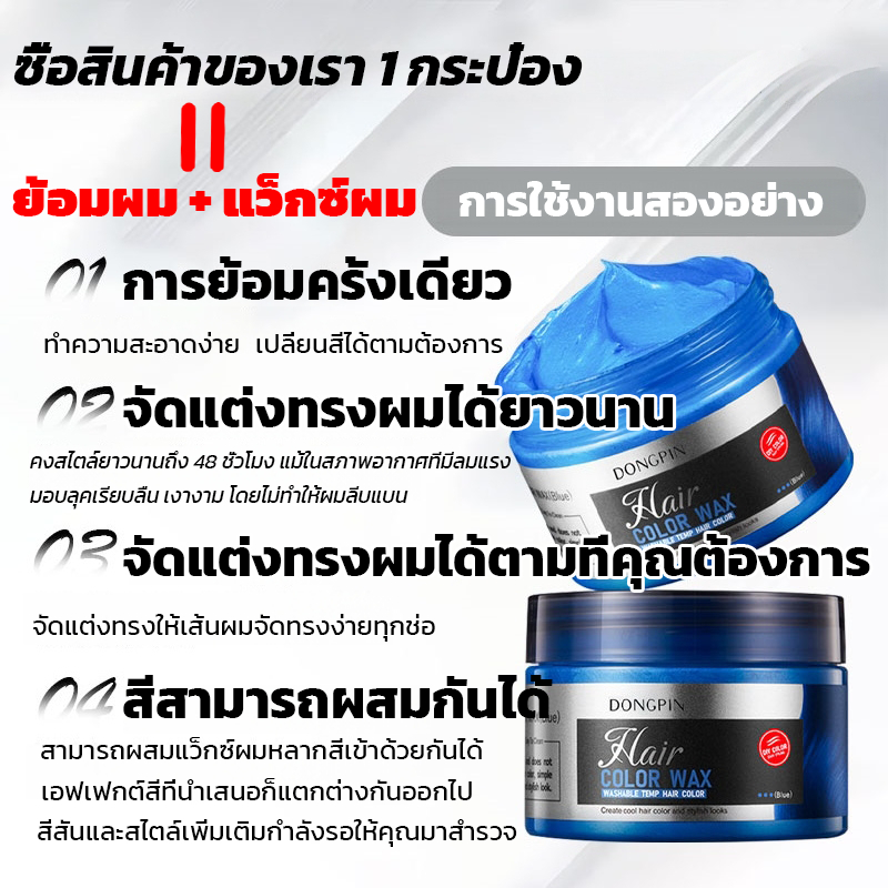 แว็กซ์สีย้อมผม แบบชั่วคราว 120 กรัม ทำสี+จัดแต่งทรงผม ล้างออกง่าย ไม่ทิ้งคราบ หลากสี สวยงาม