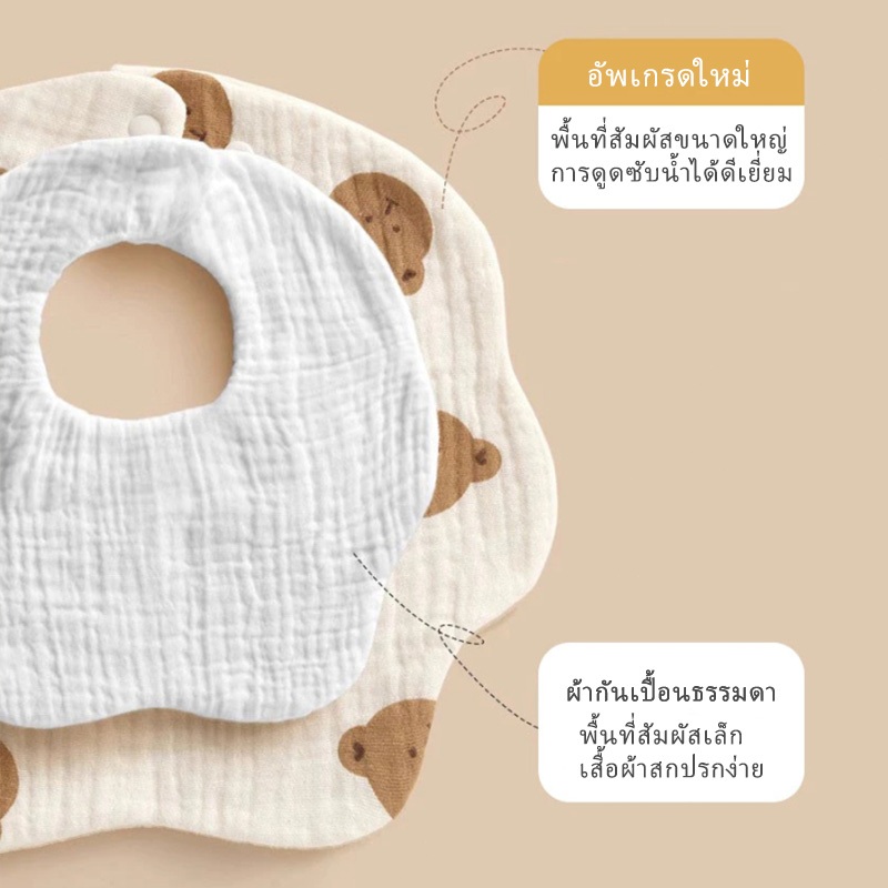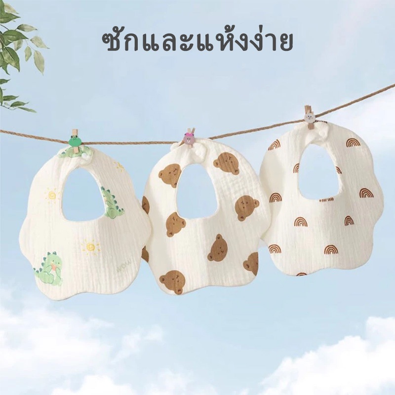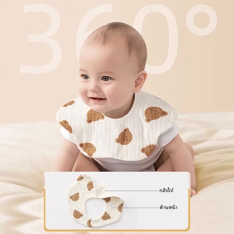 ผ้ากันเปื้อนเด็ก ผ้าซับน้ำลายผ้าฝ้ายแท้ ลายการ์ตูนน่ารัก แต่งระบาย ลูกไม้ นุ่ม ซับน้ำได้ดี ผ้าพันคอเด็กหมุนได้ 360 องศา