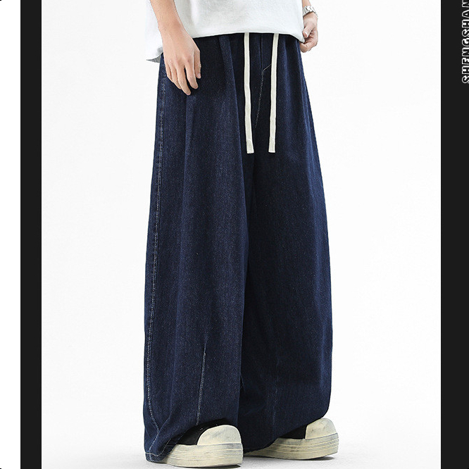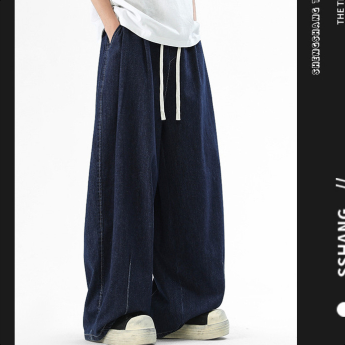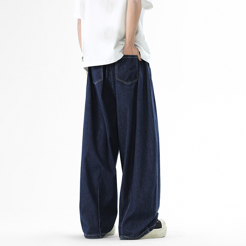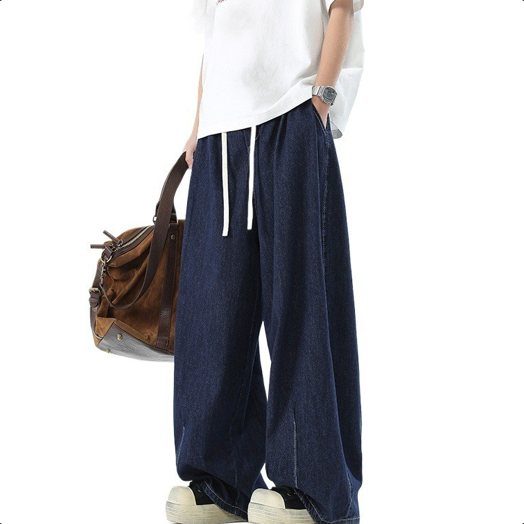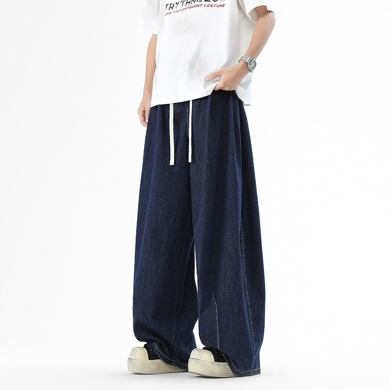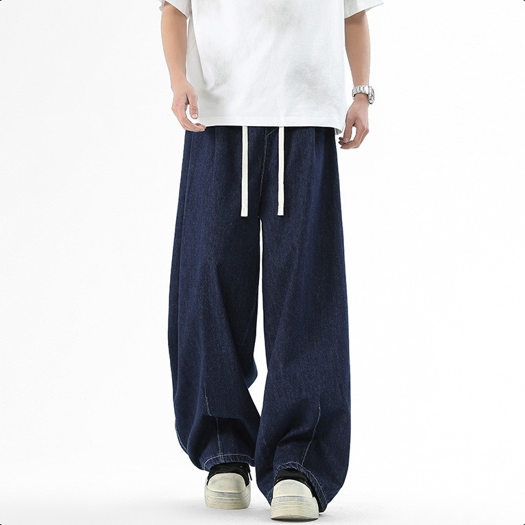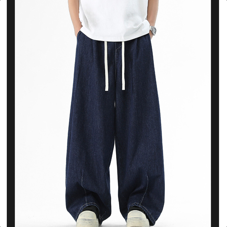 Jaey M-5XL กางเกงยีนส์ผู้ชาย กางเกงยีนขากว้าง ทรงหลวม กางเกงเอวยางยืด สีพื้น แนวตรง