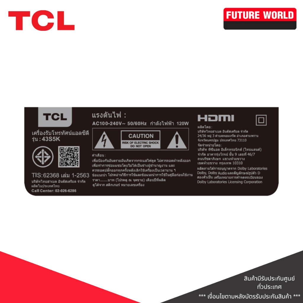 TCL 43-50 นิ้ว รุ่น 43S5K และ 50S5K HDR 10 QLED TV S5K