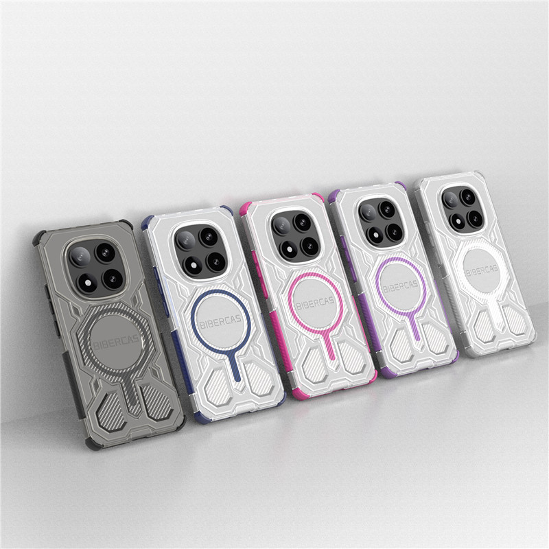 เคสโทรศัพท์แม่เหล็กที่แข็งแกร่งสําหรับ Redmi หมายเหตุ 14 Pro 5G หมายเหตุ 14 5G Turbo 4 K80 Pro K70 K70E หุ้มเกราะ anti fall เปลือกโปร่งใส PC + TPU สี่ล้อถุงลมนิรภัย riot SHELL