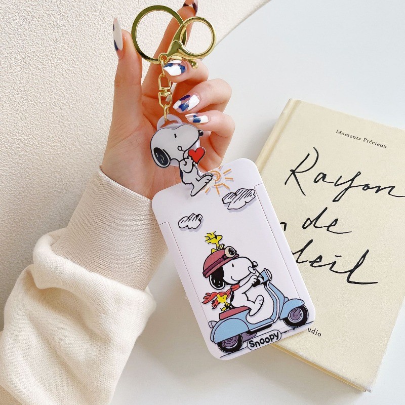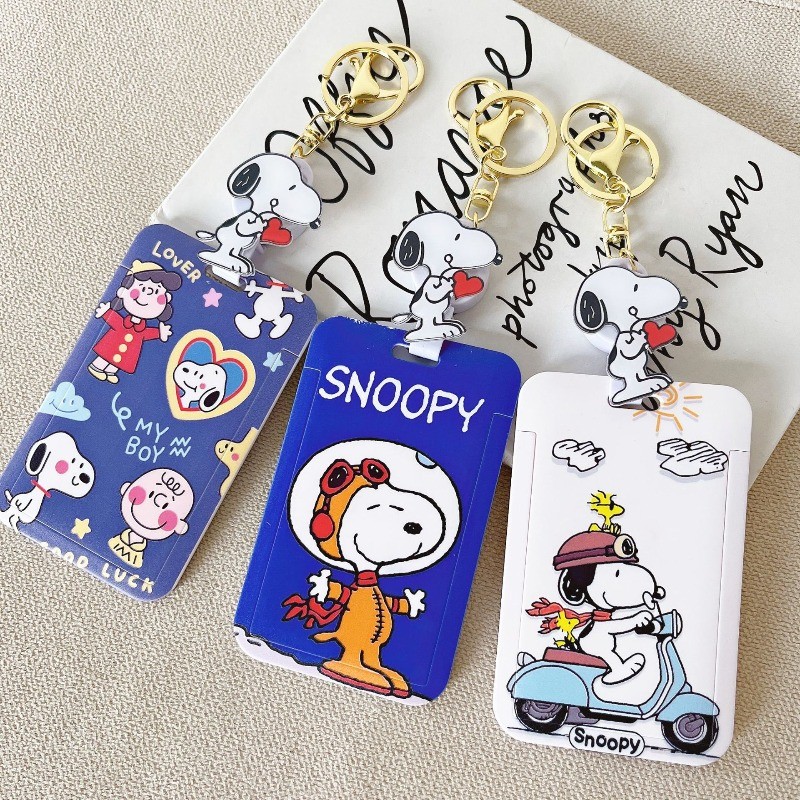 การ์ตูนการ์ตูน สนูปปี้ ยืดนักเรียนบัตรอาหารรถบัสบัตรควบคุมการเข้าถึงผู้ถือบัตรรถไฟใต้ดิน บ้าตง กระเป๋านักเรียนหัวเข็มขัดจี้พวงกุญแจ