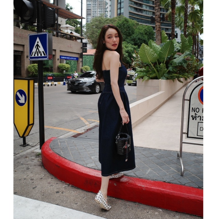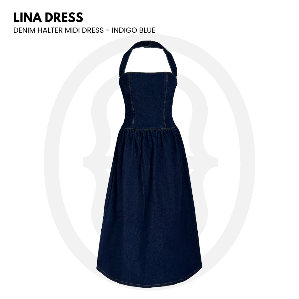 More than a look — it’s a state of mind. The LINA Denim Halter Midi Dress blends bold structure with effortless grace. Featuring a sleek halter neckline with button closure at the back, it sculpts a sharp, flattering silhouette.