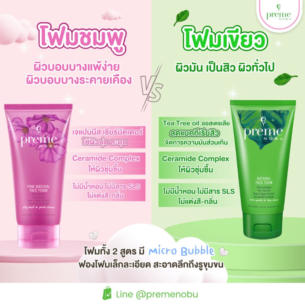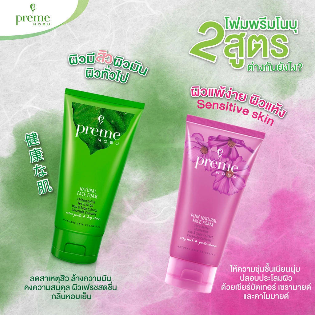 Preme Nobu Natural Face Foam 30g/50g/100g พรีม โนบุ โฟมล้างหน้าสูตรสมดุลธรรมชาติ เผยผิวใส ไร้ความมัน