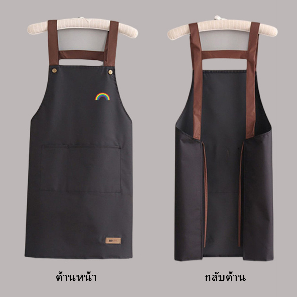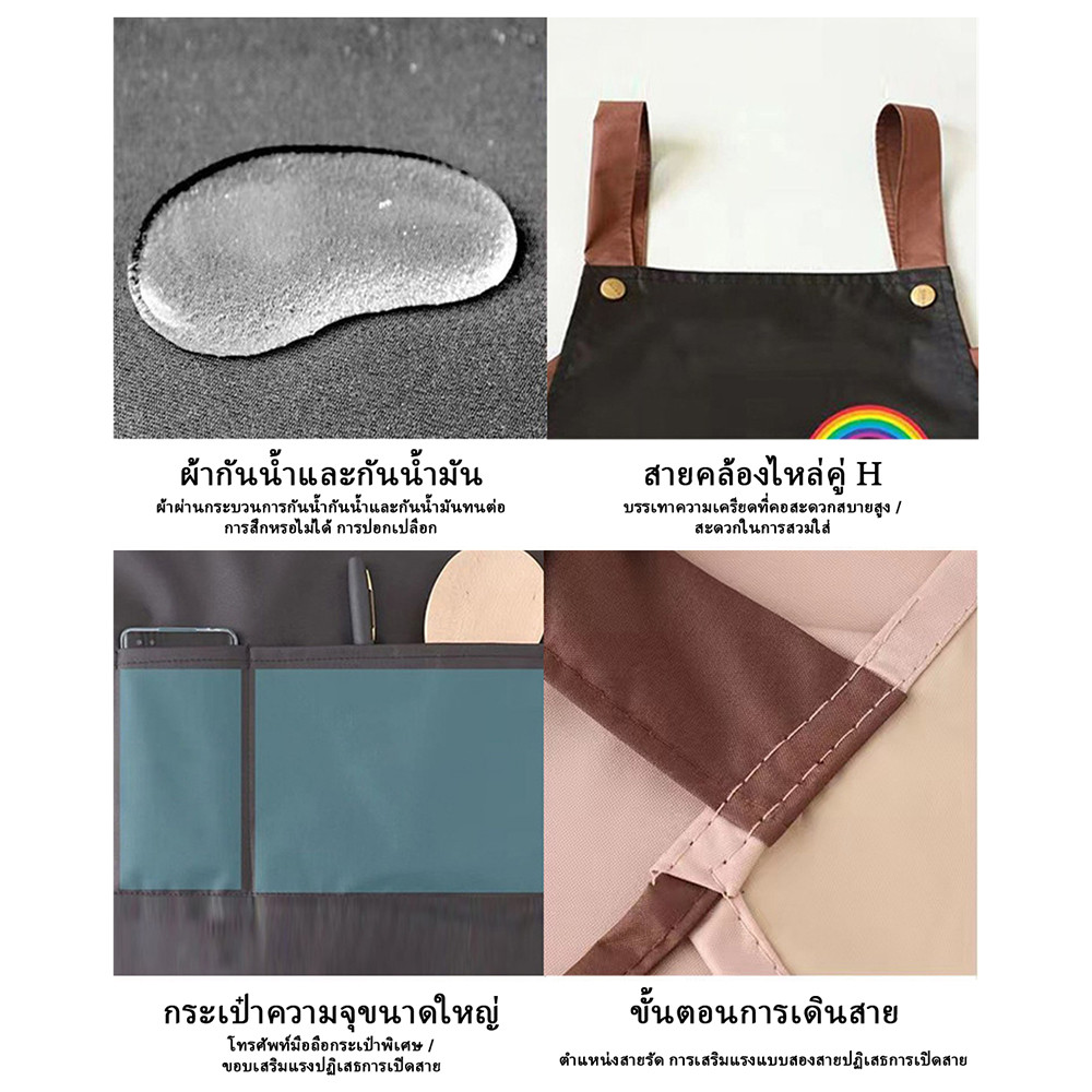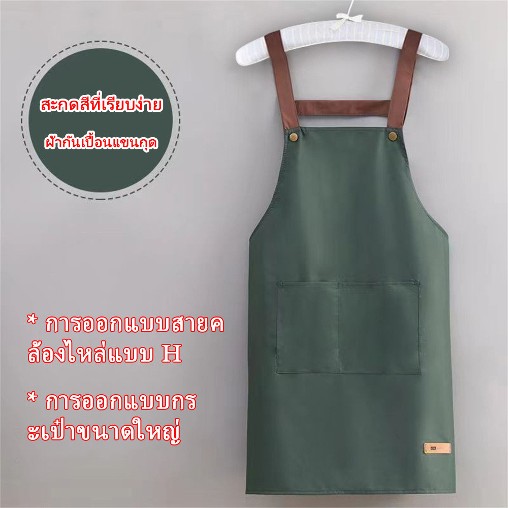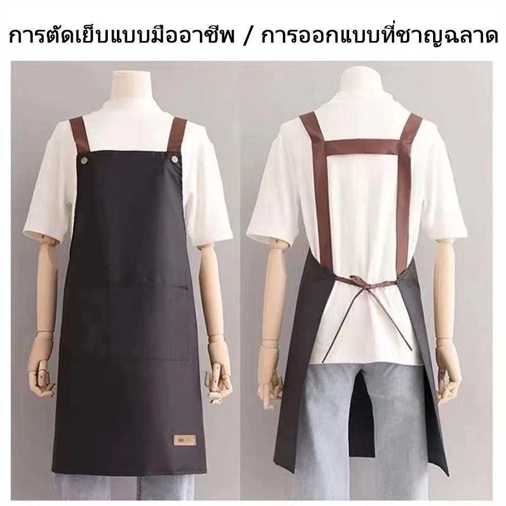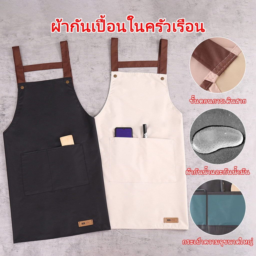 ผ้ากันเปื้อนปรับได้ ผ้ากันเปื้อนทำอาหารมืออาชีพพร้อมกระเป๋า 2 ใบ กันน้ำและทนน้ำมัน ผ้ากันเปื้อนทำอาหารในครัวเรือน TH