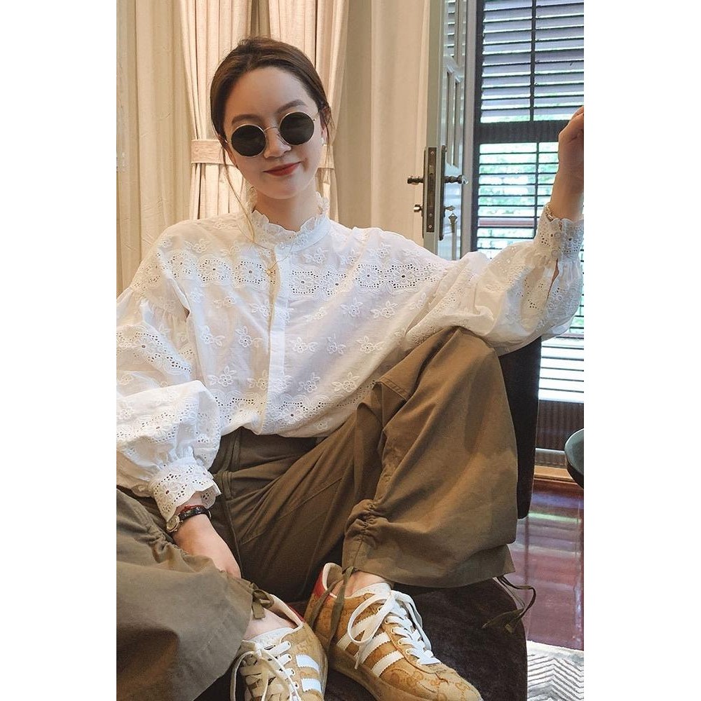 ลูกไม้กลวงปักเสื้อสไตล์ฝรั่งเศสรองเท้าไซส์เล็กผ้าฝ้าย พร้อมลายละเอียดเหมือนขนแกะและหนังมิงค์ X4ZP