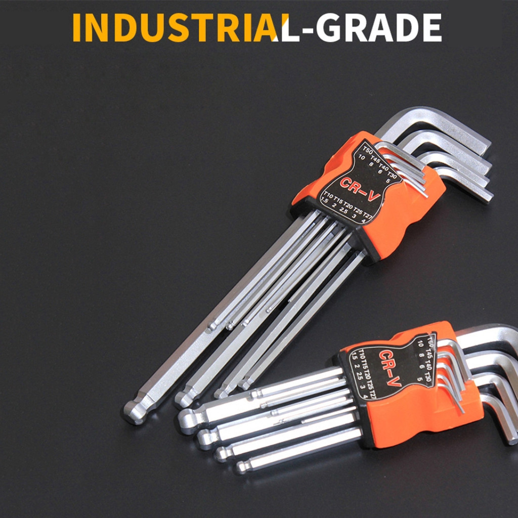 ชุดประแจหกเหลี่ยม 9ตัว/ชิ้น เหล็กเกรด CR-V แท้ 100% แข็งแรง ทนทาน ชุดประแจขันมุมภายในเกรดอุตสาหกรรม