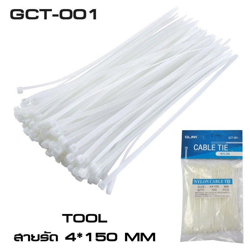 GLINK สายเคเบิลไทร์ สีขาว GCT-01 4″ 0.18×4 INCH WHITE CABLE TIE 100ชิ้น/แพ็ค