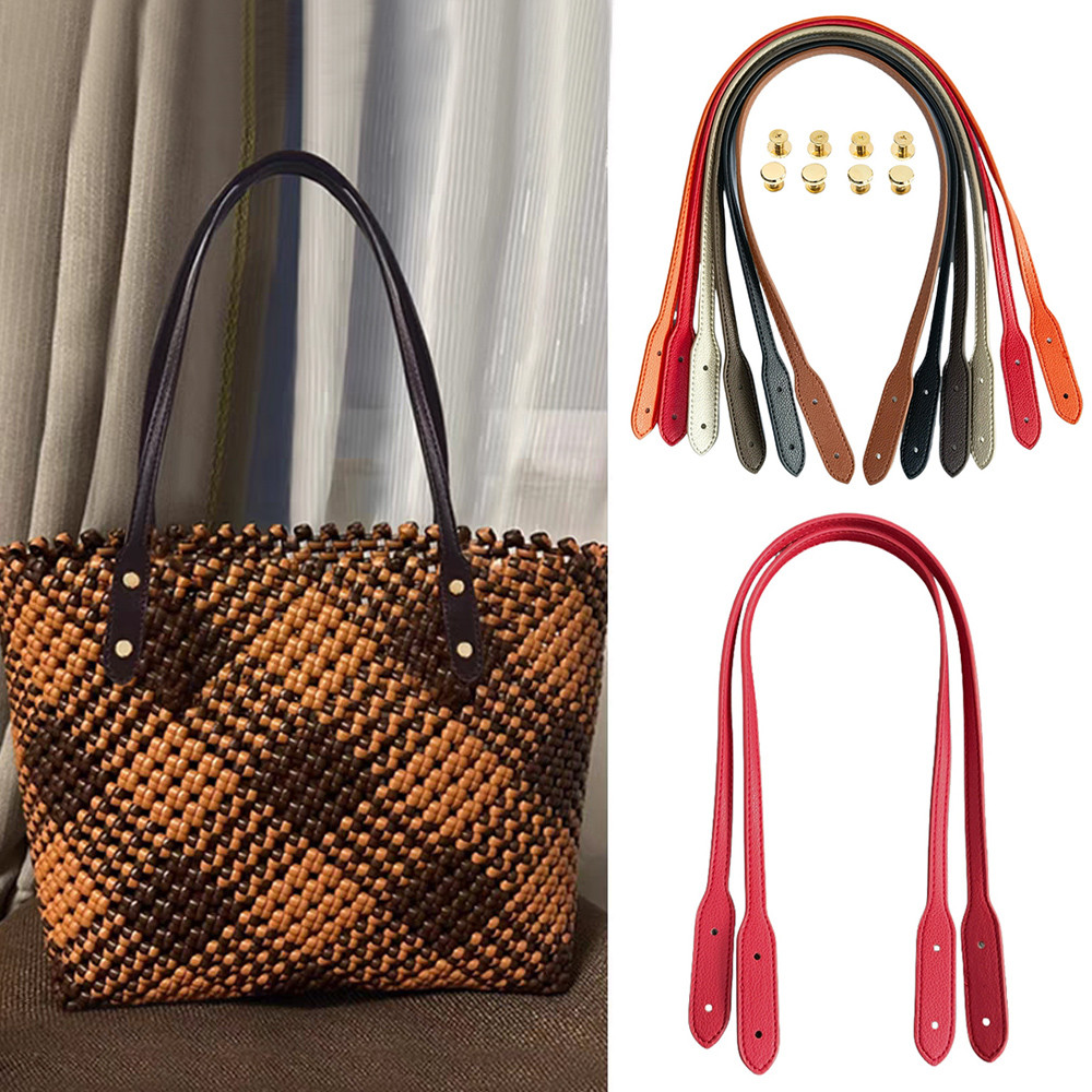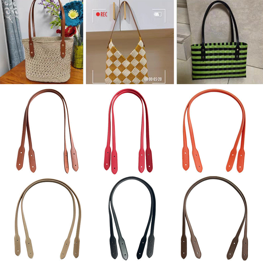 สายรัดกระเป๋าถือแบบ Rivet Litchi Pattern สีทึบ PU 1 คู่