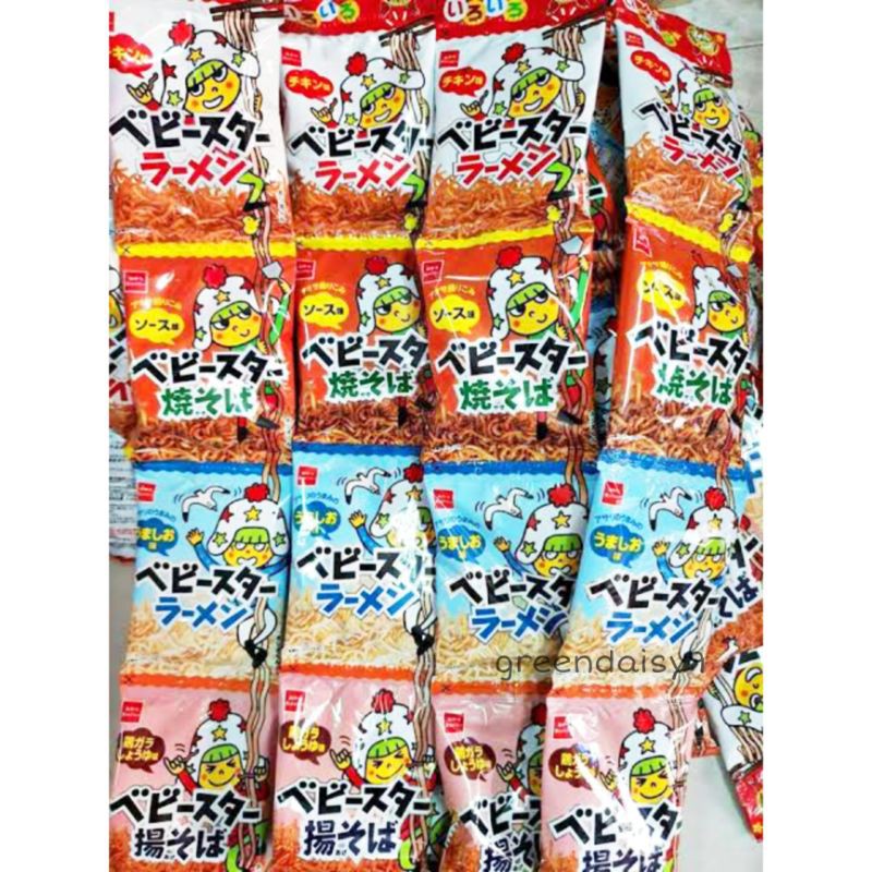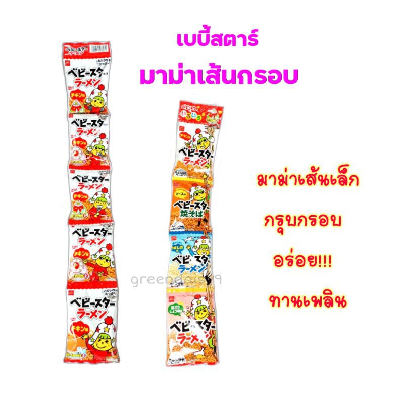 Baby Star มาม่าเส้นกรอบ แบบแถว จากญี่ปุ่น เป็นขนมญี่ปุ่นซึ่งเป็นที่นิยมและชื่นชอบของทั้งเด็กและผู้ใหญ่ เส้นมาม่าเป็นเส้นเล็ก กรุบกรอบ อร่อยทุกรส!!! ทานเพลิน สามารถแบ่งซองย่อยได้ง่ายต่อการรับประทานเป็นของว่าง และสะดวกเมื่อพกพา