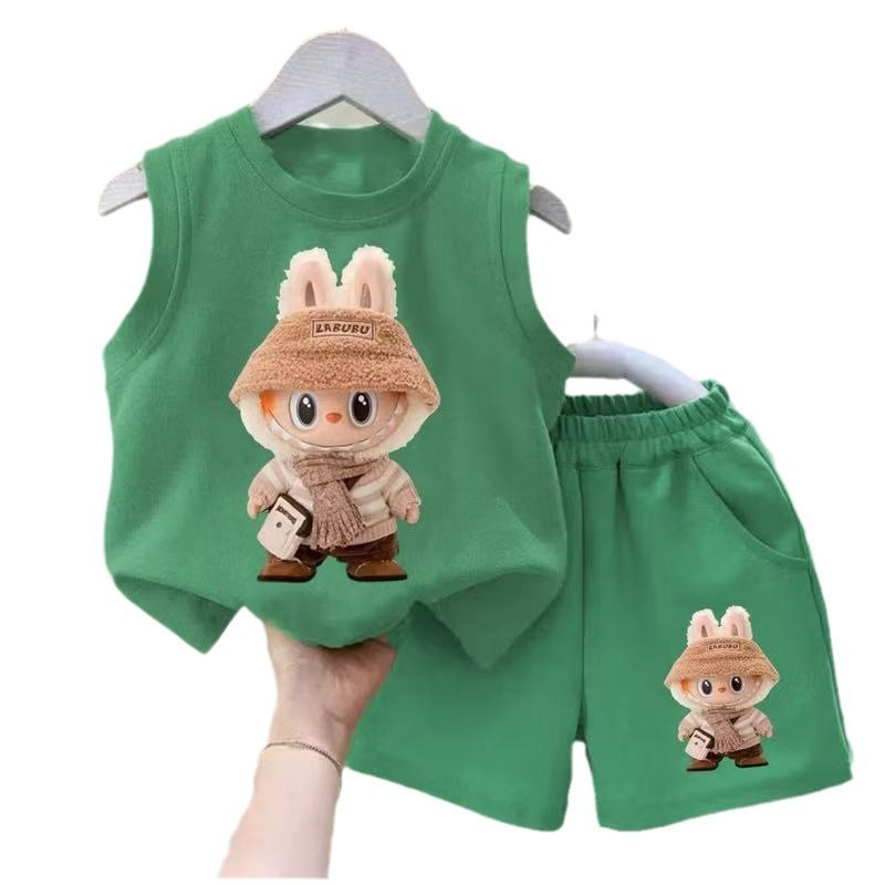 90-140เสื้อผ้าเด็กการ์ตูนน่ารักในฤดูร้อนพร้อมเสื้อกั๊กแขนกุดและกางเกงขาสั้นสําหรับเด็กชายและเด็กหญิง