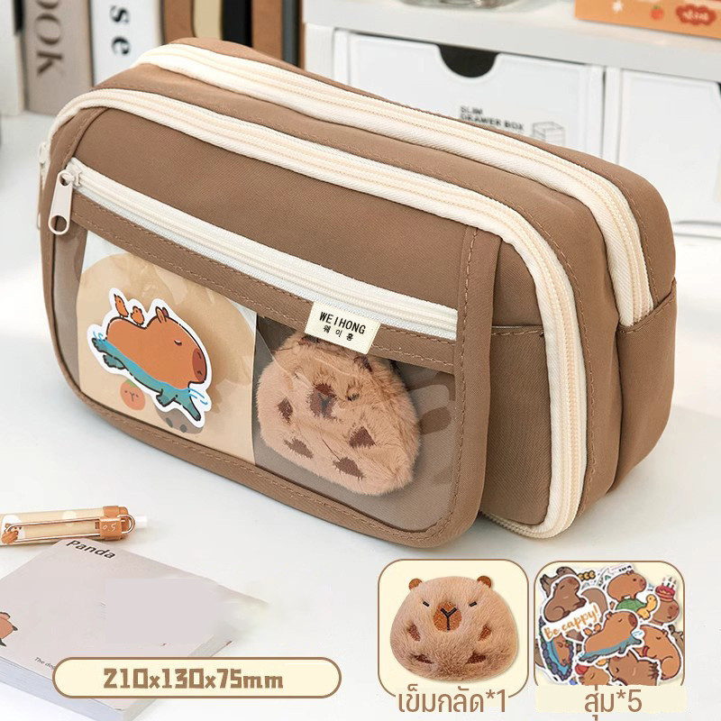 กระเป๋าดินสอ กระเป๋าเครื่องเขียน สองชั้น ลายการ์ตูนน่ารัก Sanrio Capybara ของใช้โรงเรียน สำหรับนักเรียน
