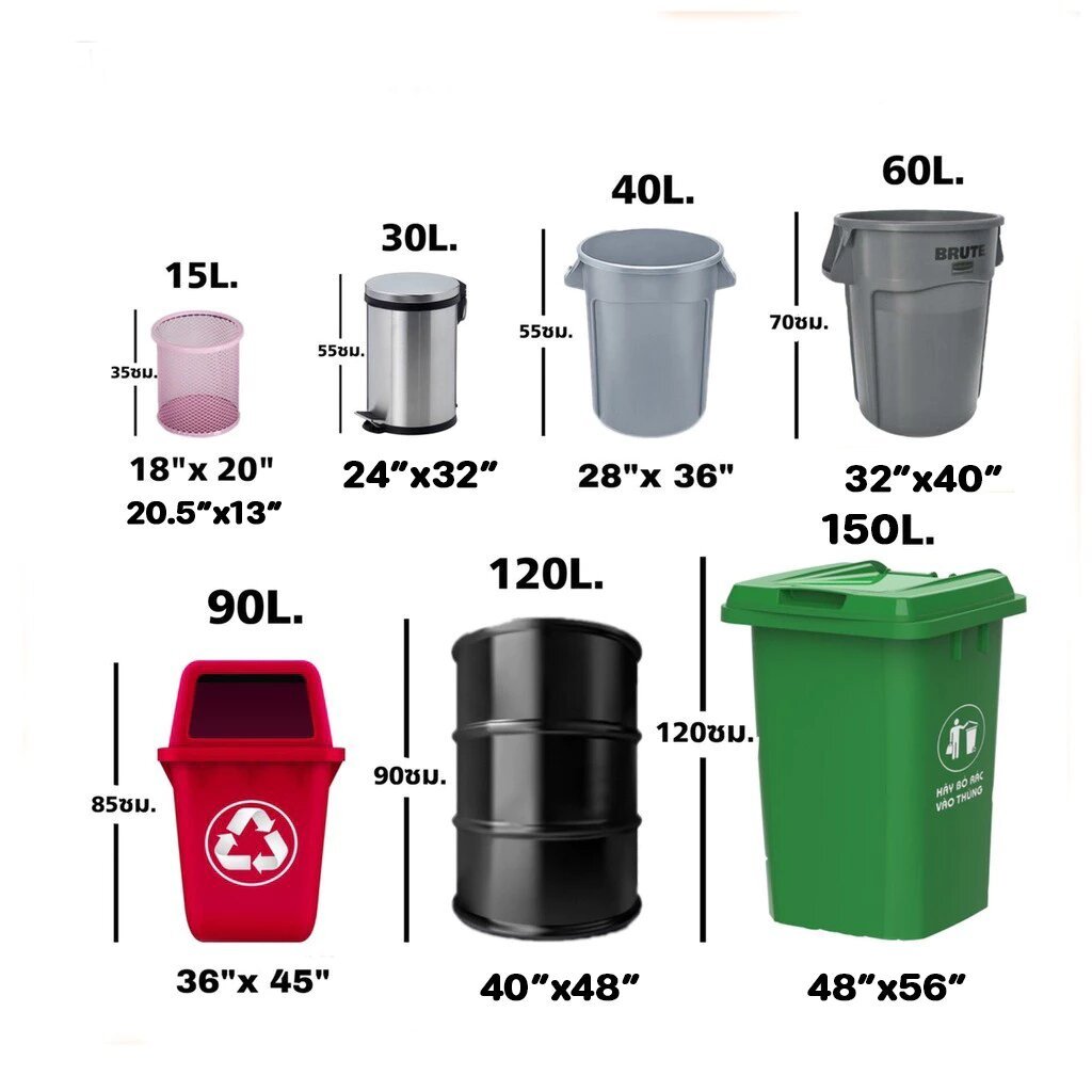 มี 5ขนาดให้เลือกใช้ได้ตามถังขยะของลูกค้า ขนาดหน่วยเป็น ( นิ้ว )