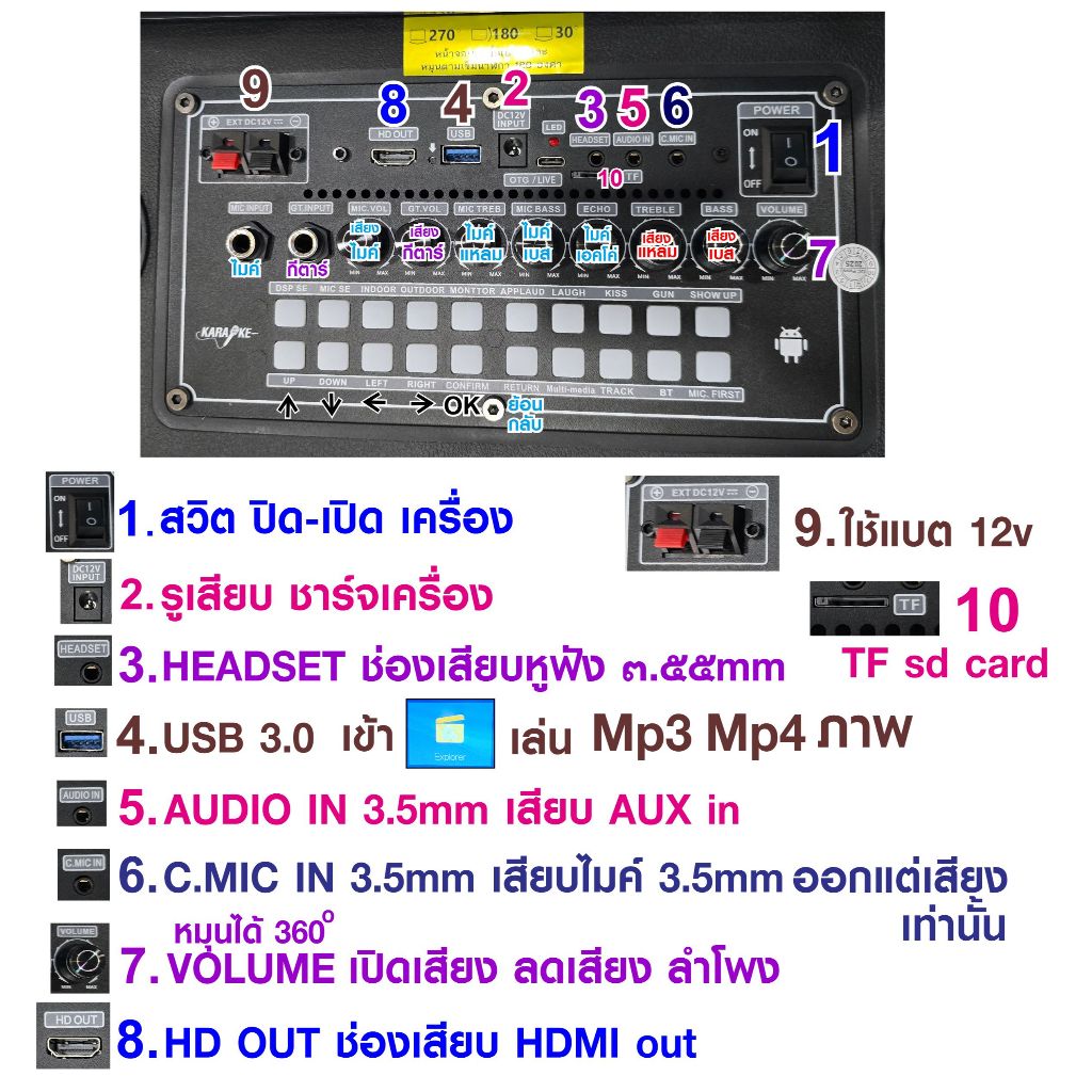 ► ในเครื่อง ไม่มี เพลงคาราโอเกะ (ติดสิขสิทธิ์) ลูกค้าต้องหาจากยูทูป / USB MP3/MP4(ทำนองเพลง) มาเล่นในเครื่องได้ ครับ