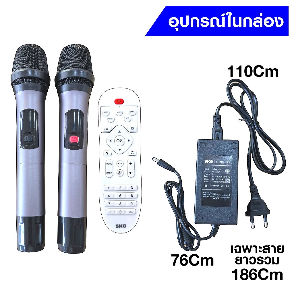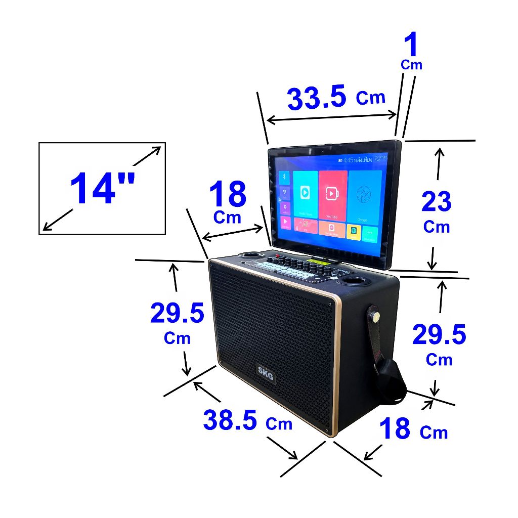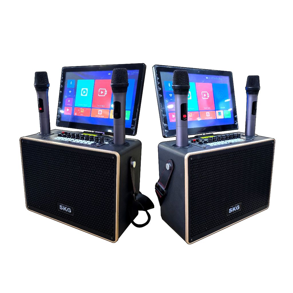 SKG ลำโพงพกพา คาราโอเกะ 6 นิ้ว 60wRms มีจอ 14นิ้ว พร้อม 2ไมค์คู่ รุ่น AV-350 (แอนดรอย) สีดำ
