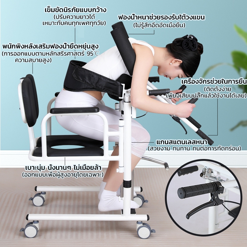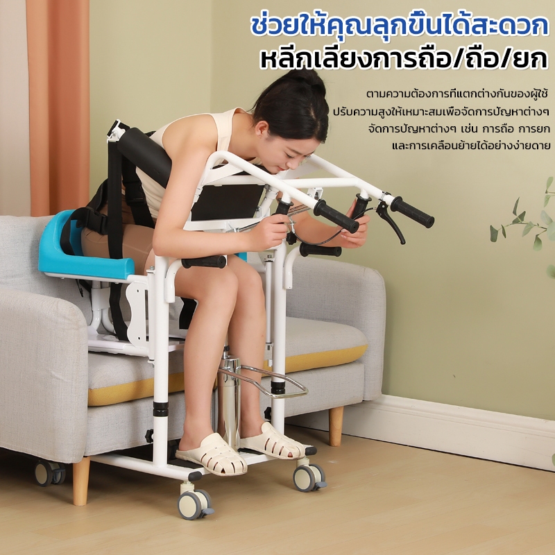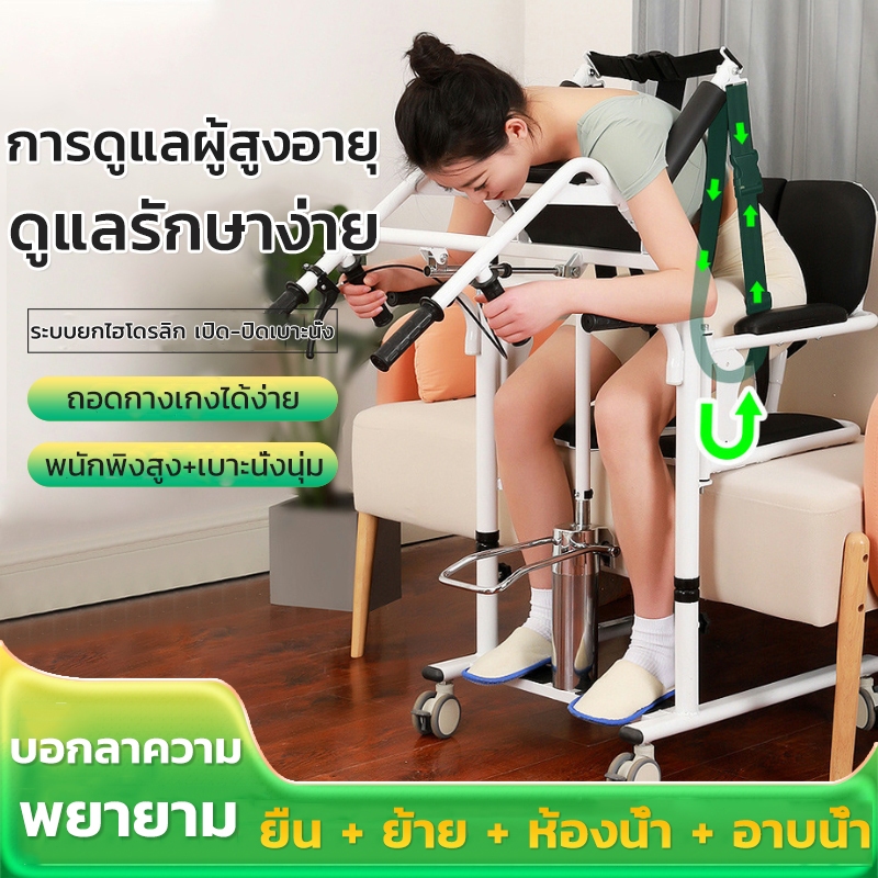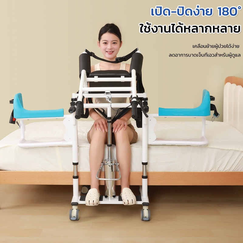 รถเข็นเคลื่อนย้ายผู้ป่วย อุปกรณ์เคลื่อนย้ายผู้ป่วย แบบมือหมุน ติดเตียง ดูแลคนป่วย คนแก่ เก้าอี้ยกตัวผู้ป่วยรถเดินรถอาบน้
