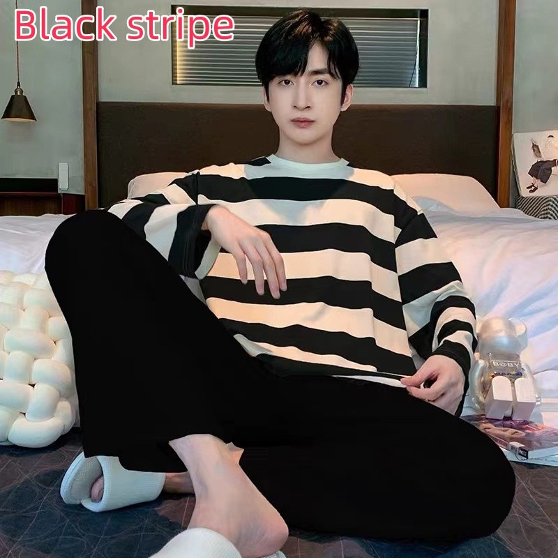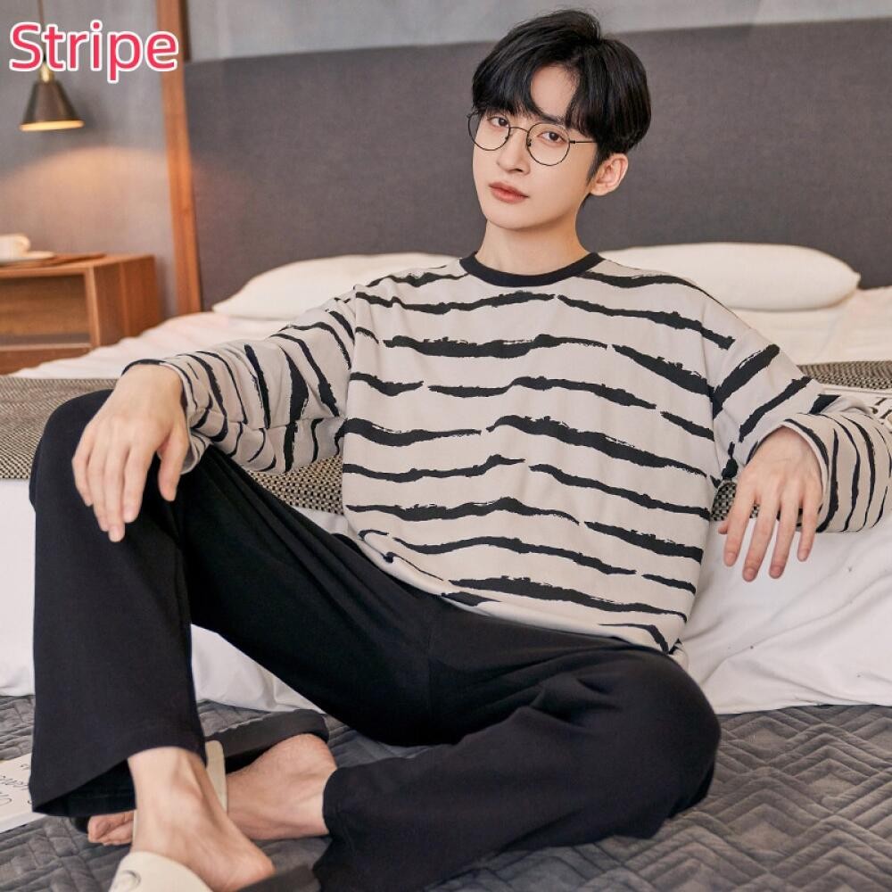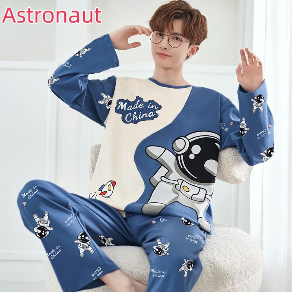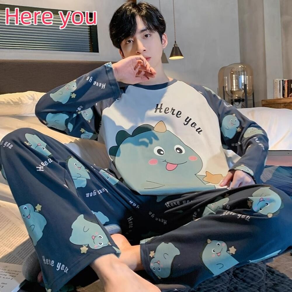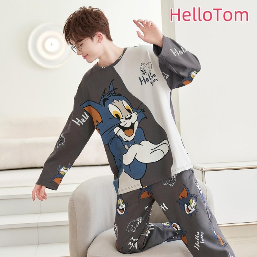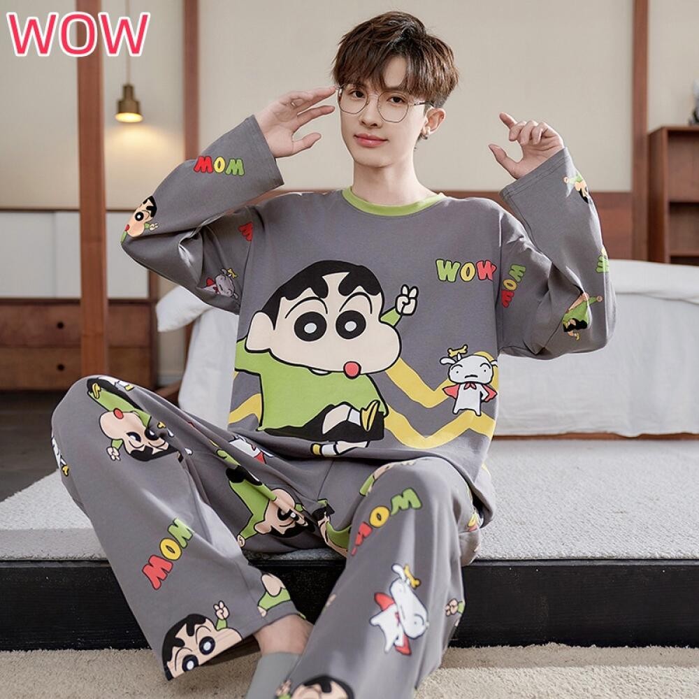 ชุดนอนผู้ชายไซส์ใหญ่ M-XL ผ้าเนื้อนุ่ม ทรงหลวม พิมพ์การ์ตูนแฟชัน กางเกงและเสื้อแขนยาว