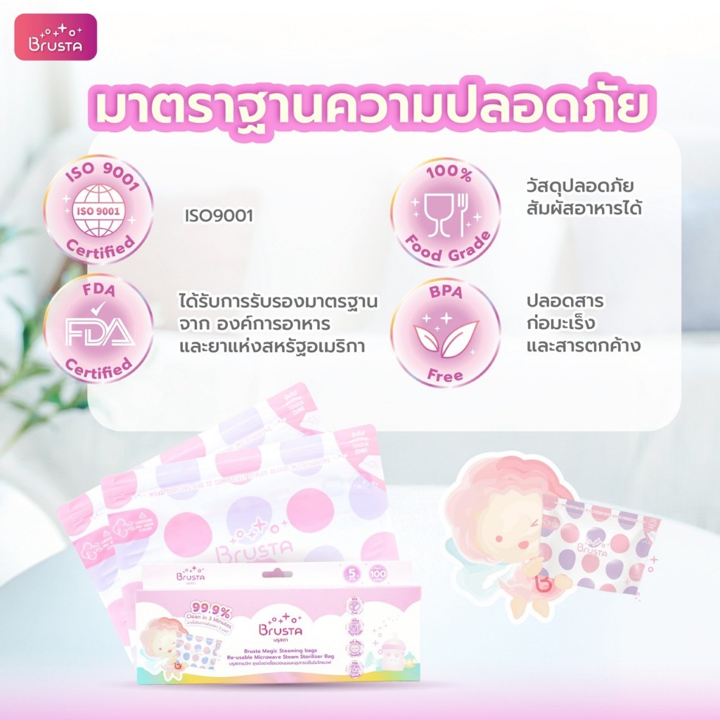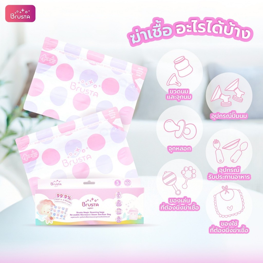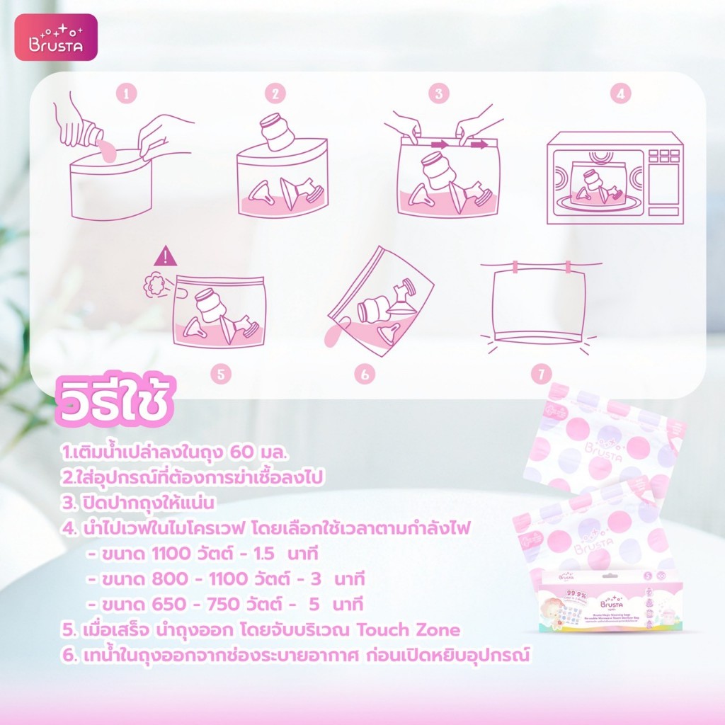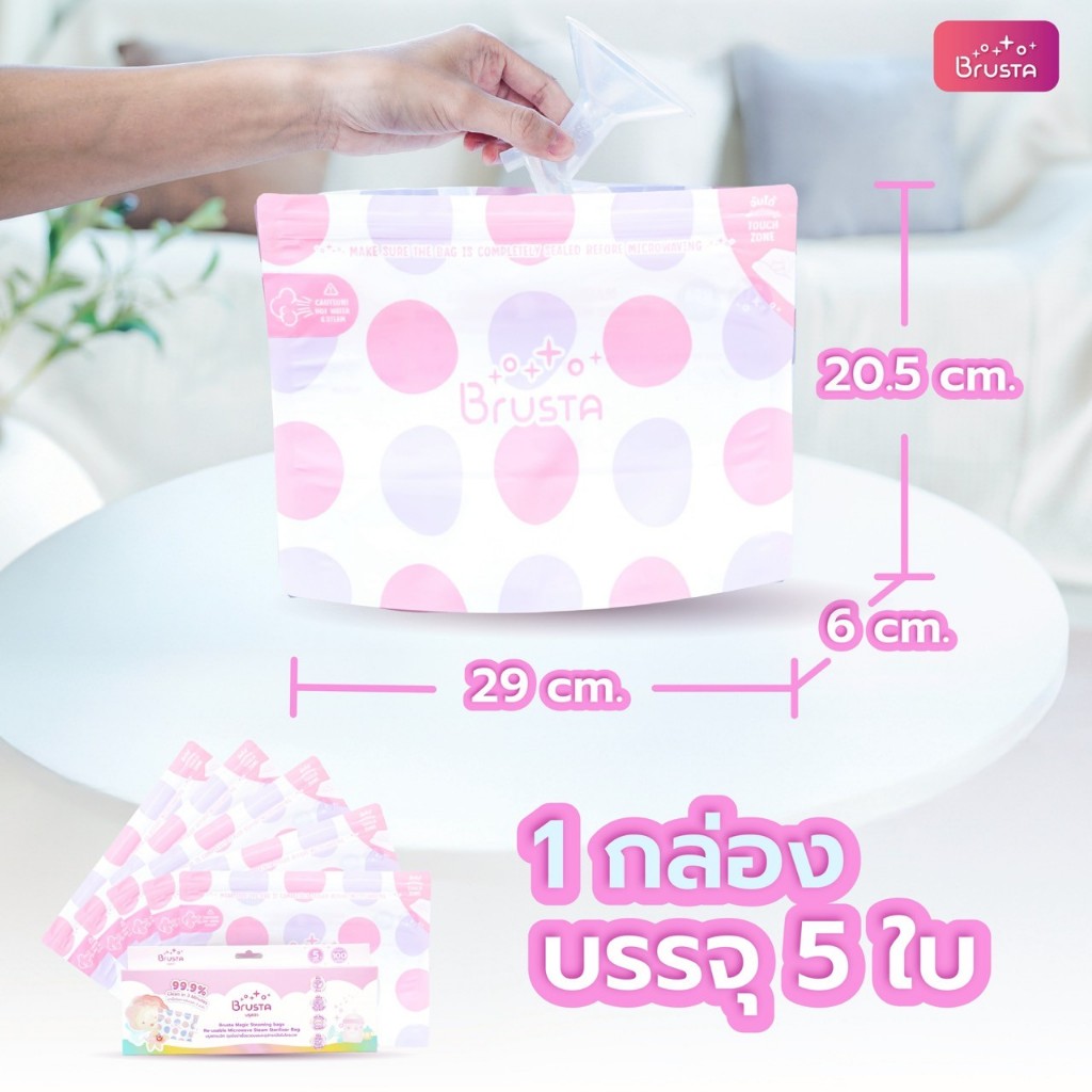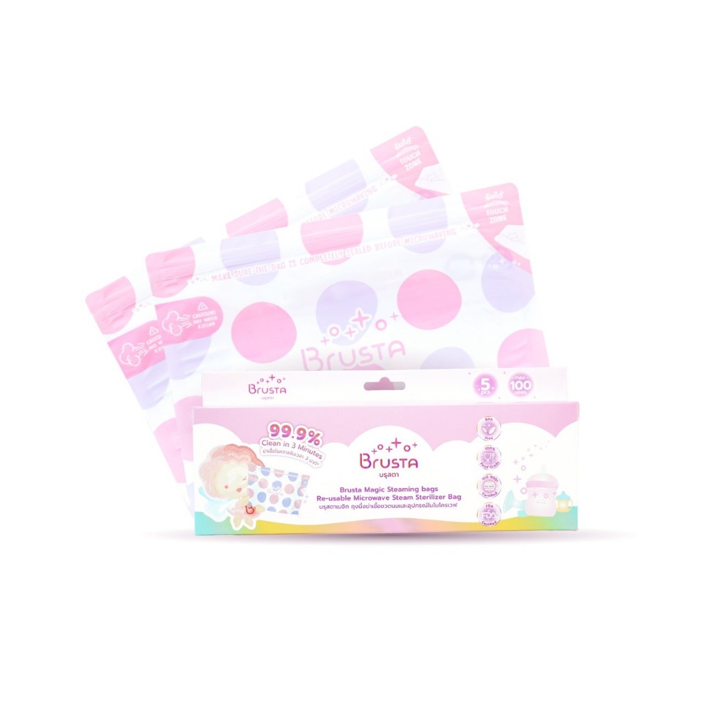 BRUSTA ถุงนึ่งขวดนมไมโครเวฟ Sterilizer Bags บรรจุ 5 ใบ ใช้งานได้ 20 ครั้ง
