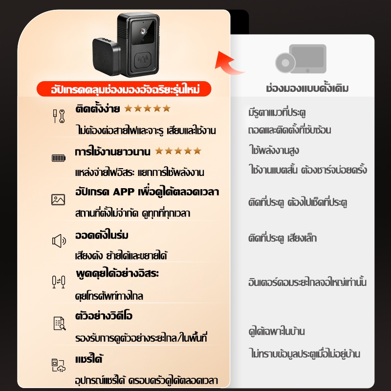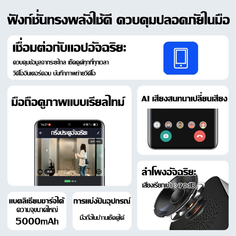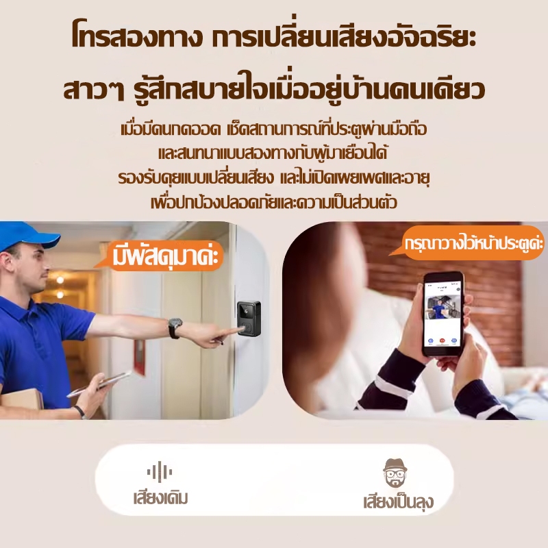 ?ชั้น1เชื่อมต่อกับชั้น10?ออดบ้าน กริ่งประตูอัจฉริยะ ออดไร้สาย พูดเสียงที่แปรผัน 4Kภาพชัดสูง โทรสองทาง กริ่ง Doorbell