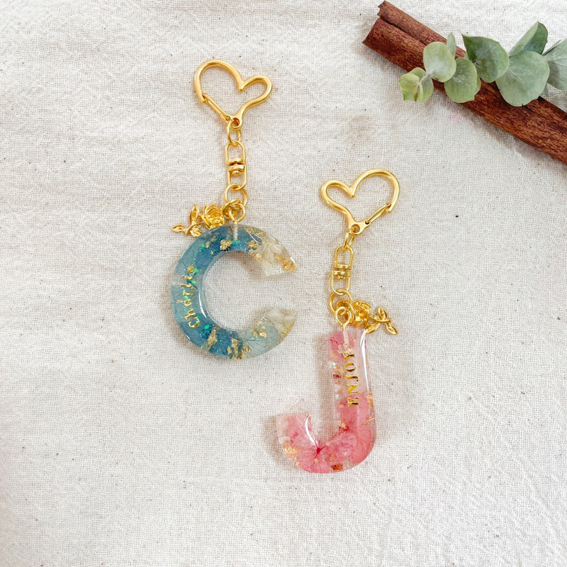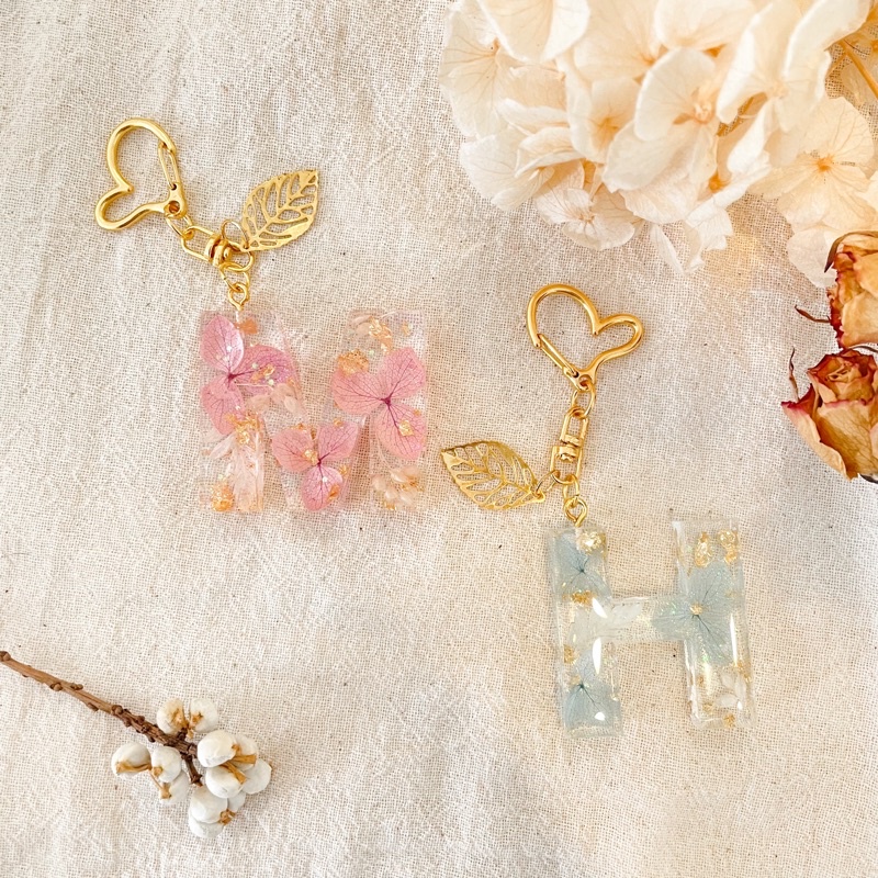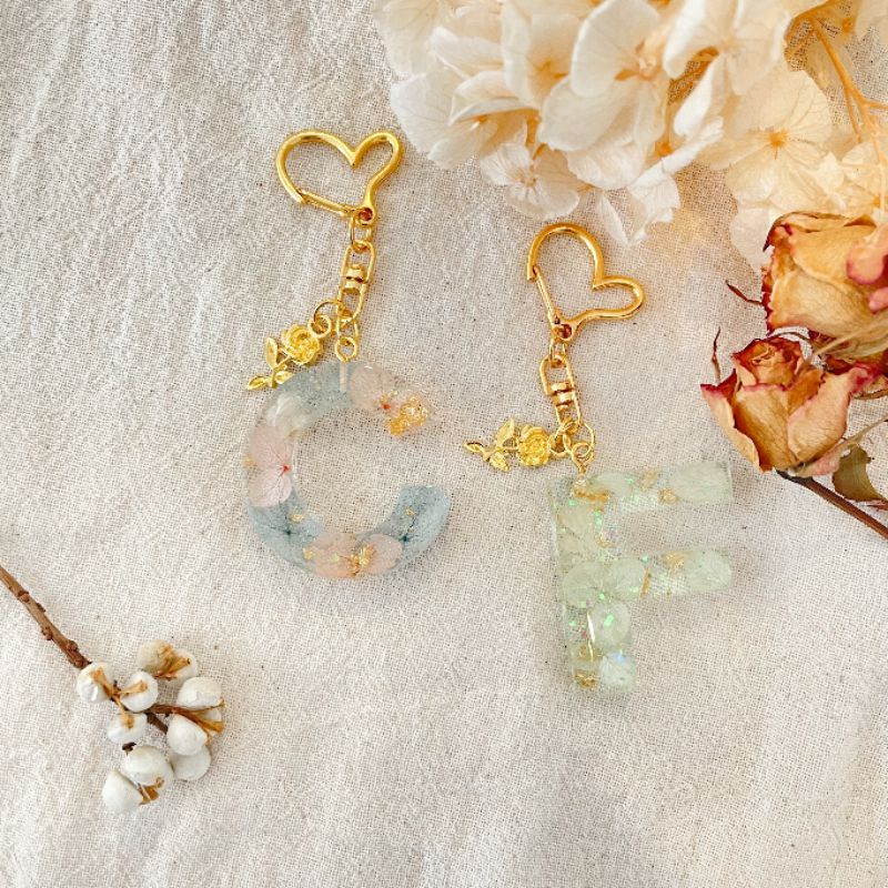 [งานสั่งทำ] พวงกุญแจเรซิ่น พวงกุญแจตัวอักษรตกแต่งดอกไม้แห้ง