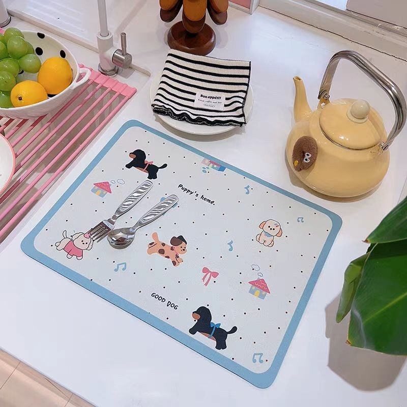 โปรดักส์เนม:แผ่นรองน้ำจากดินเคลือบซิลิกา สำหรับโต๊ะครัว อ่างล้างจาน ก๊อกน้ำ แผ่นดูดซับน้ำ