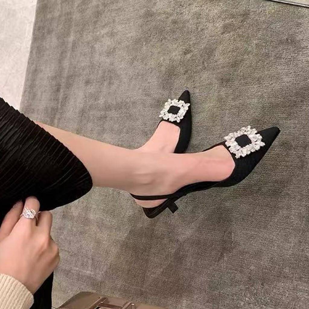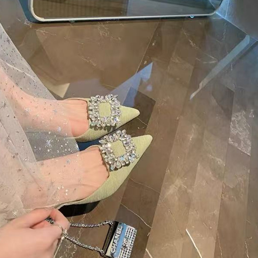 รองเท้าส้นสูงผู้หญิงแฟชั่นฝรั่งเศส สไตล์พชรหรู