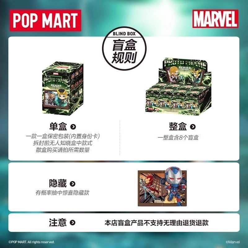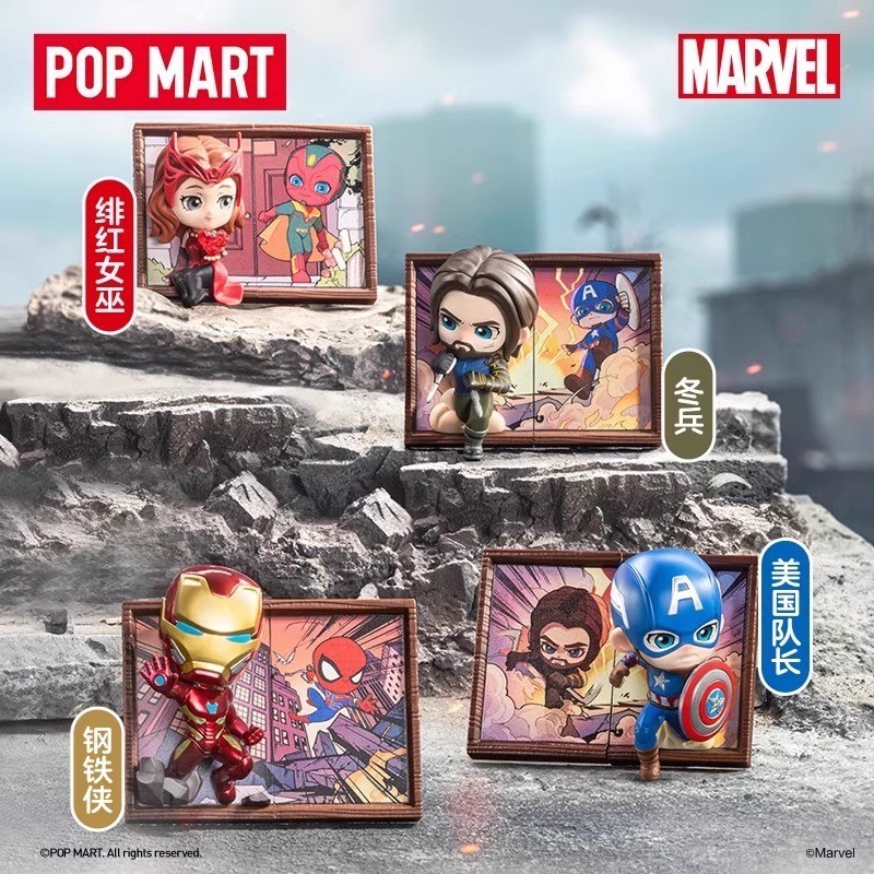 จัดส่งฟรี 100% อย่างเป็นทางการของแท้ Pop Mart Marvel กรอบรูป Series Figure-Made Mystery กล่องอินเทรนด์แฟชั่นของเล่นของขวัญเครื่องประดับ