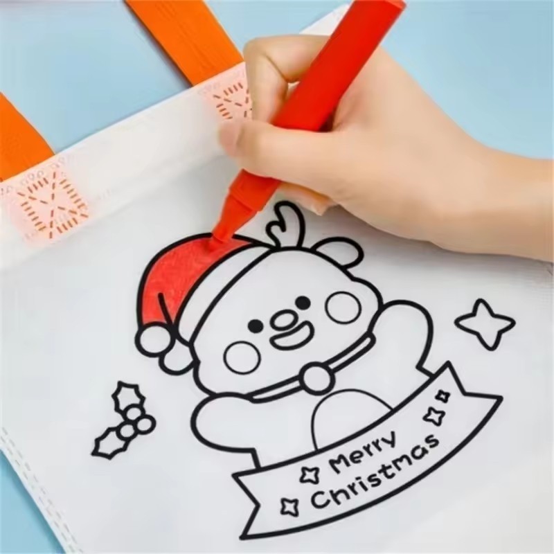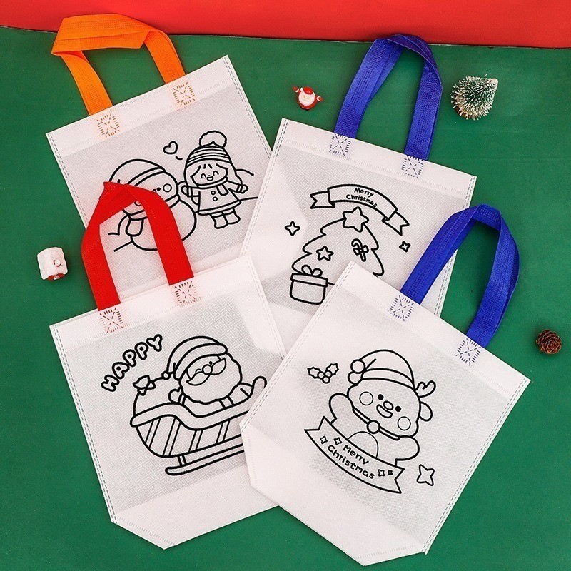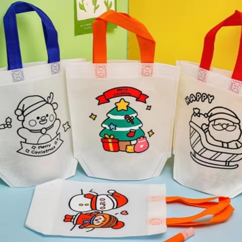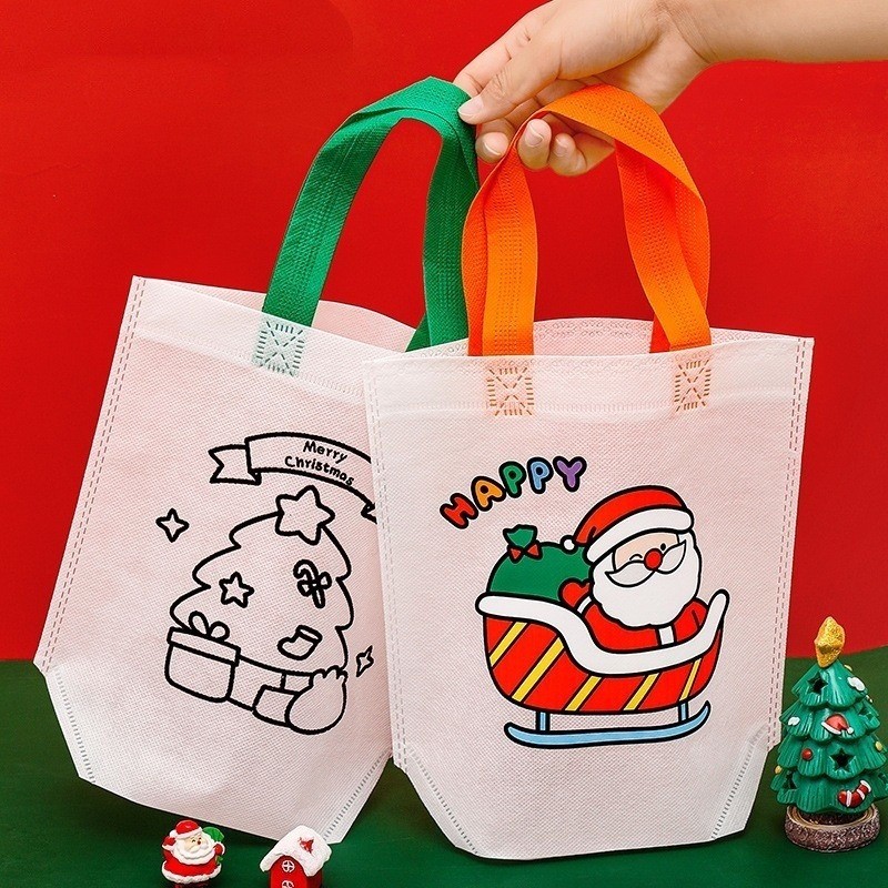 กระเป๋าถือลายการ์ตูนคริสต์มาสกราฟฟิตี-ถุงขนมไม่ทอ-ถุงของขวัญเด็กปีใหม่ 1/3/5 ชิ้น