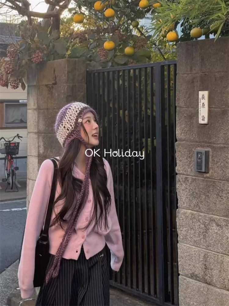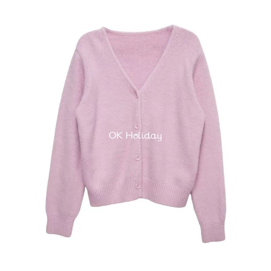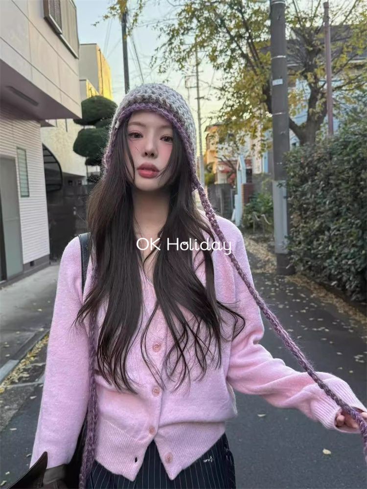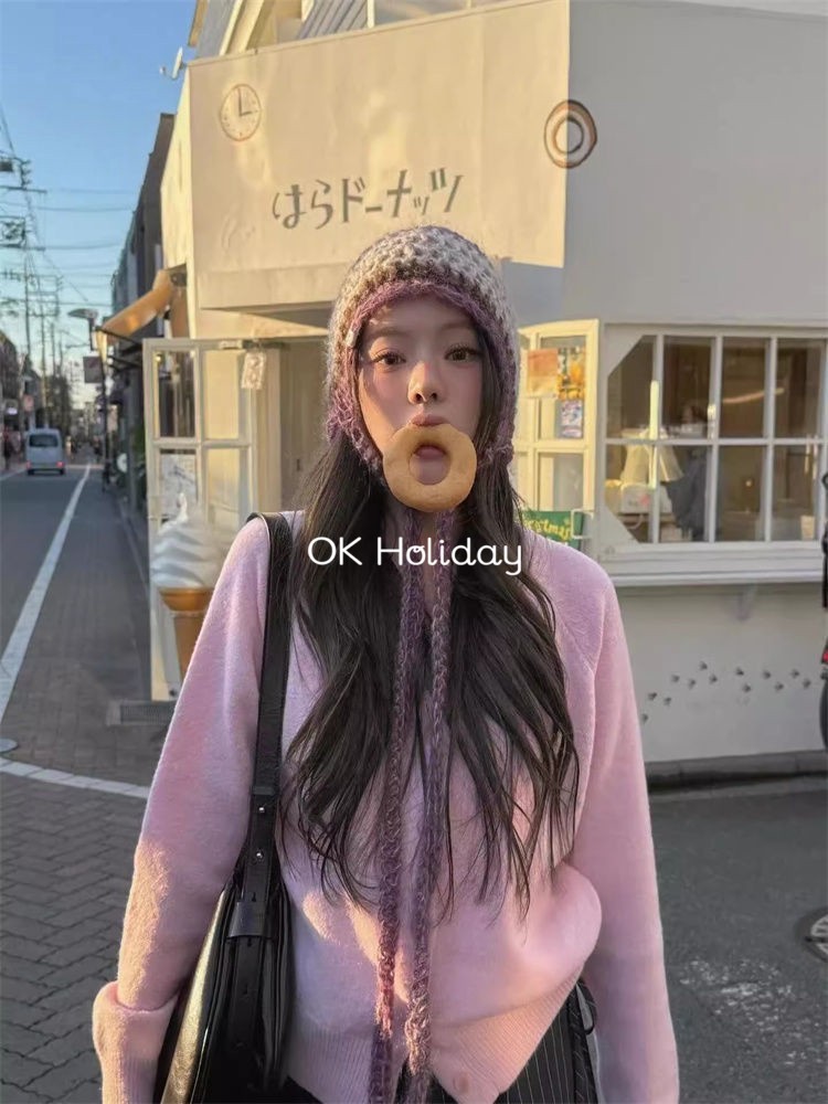 เสื้อกันหนาวสเวตเตอร์ถัก Soft Waxy สีชมพู สำหรับผู้หญิง เหมาะสำหรับฤดูใบไม้ผลิและใบไม้ร่วง สไตล์หวานๆ