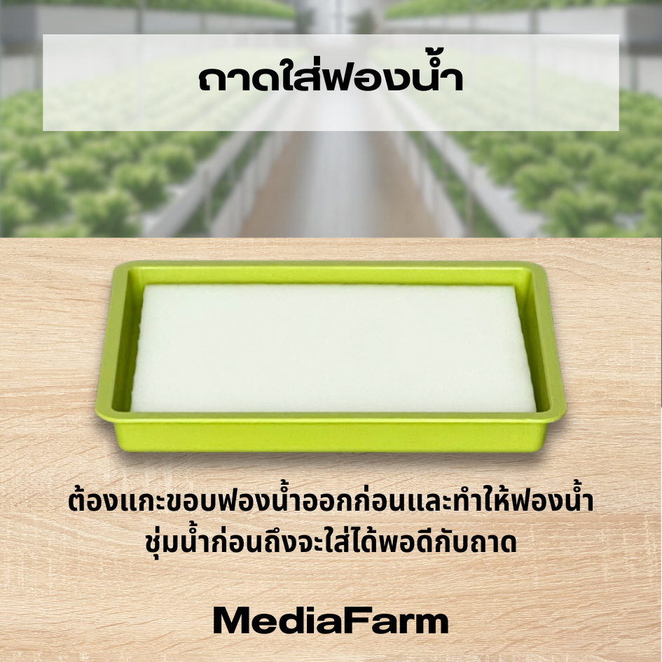 ต้องแกะขอบฟองน้ำออกก่อนและทำให้ฟองน้ำชุ่มน้ำก่อนถึงจะใส่ได้พอดีกับถาด