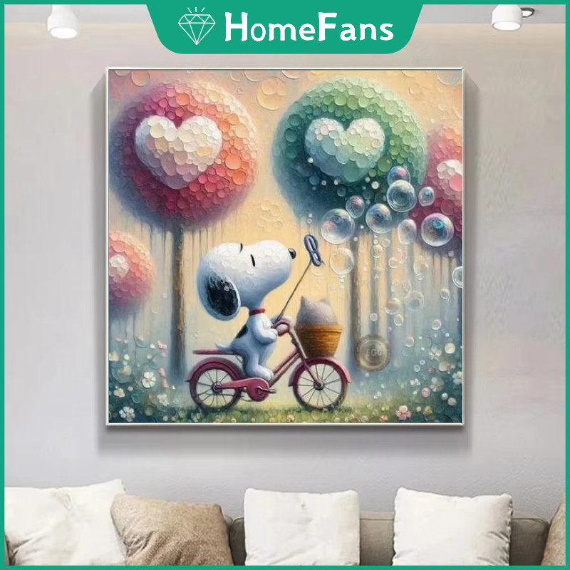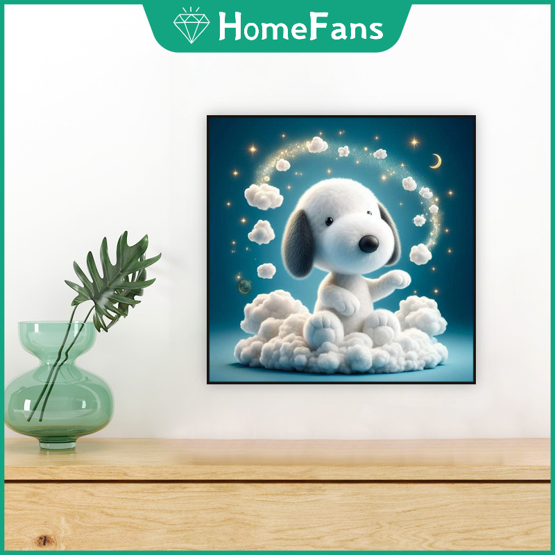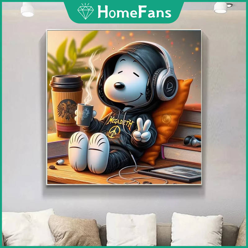 HFCool Snoopy การ์ตูนชุดภาพวาดเพชรน่ารักสุนัขศิลปะชุดปักครอสติสตกแต่งแขวนผนังเหมาะสําหรับห้องนั่งเล่นและตกแต่งห้องนอนของขวัญ