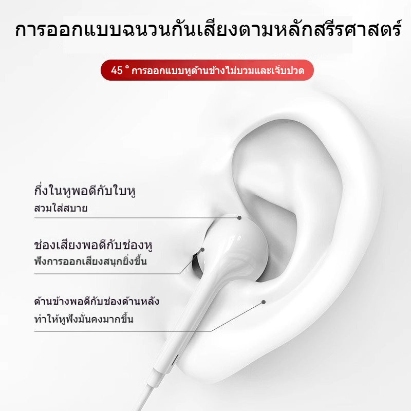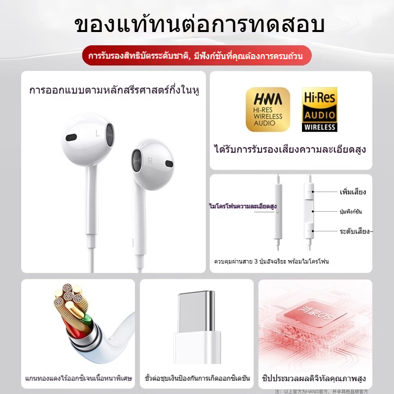 สำหรับโทรศัพท์มือถือ ios หูฟัง สาย typ c 3.5mm ด้วยไมโครโฟน คุณภาพสูงแท้หูฟังมีสาย หูฟังนอน หูฟังวิ่ง