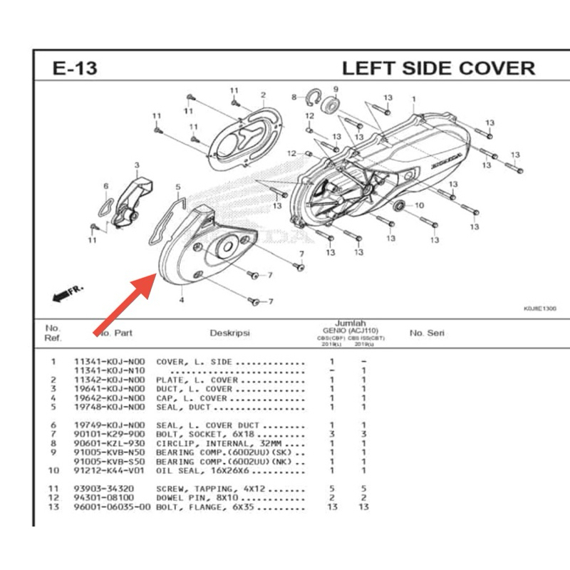 ฝาครอบ L ฝาครอบพลาสติก CVT BeAT K1A Genio Scoopy K2F original AM 1962K0JN00