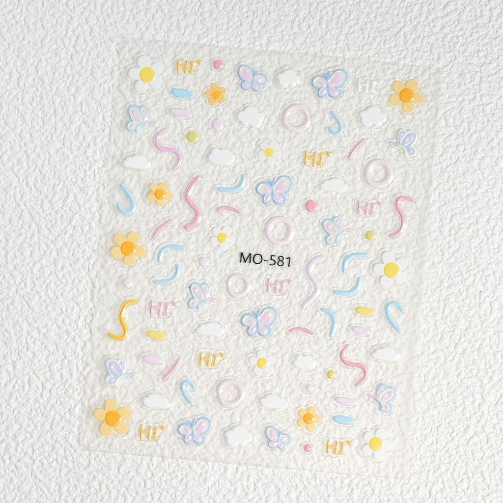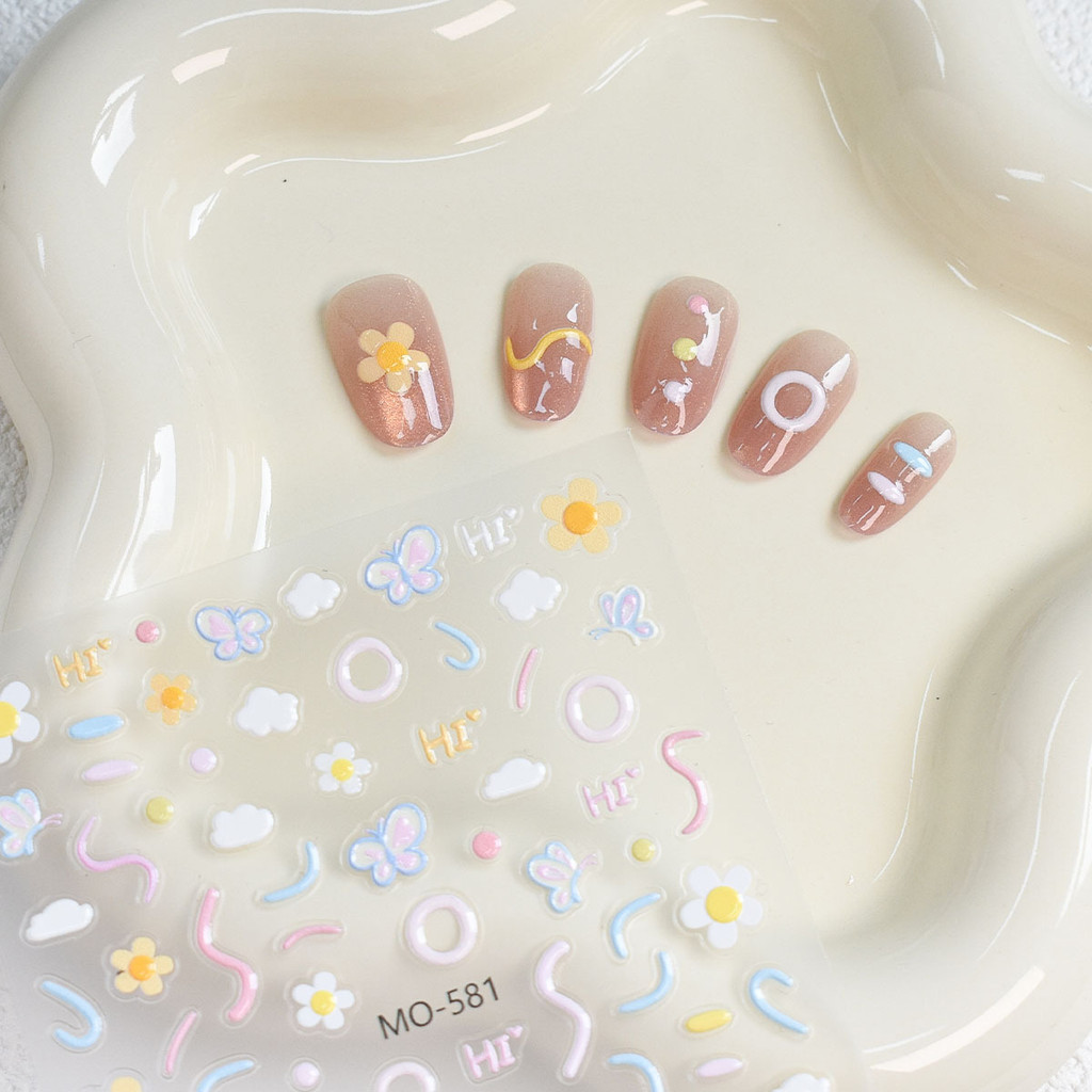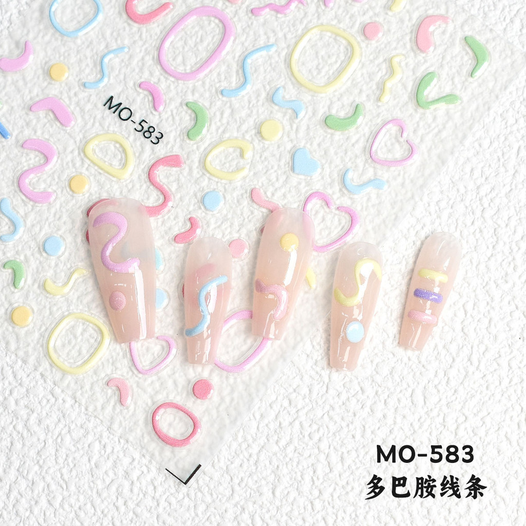 Dopamine Line 5D Jelly Nail Stickers Love Butterfly Graffiti Candy Color อเนกประสงค์ตกแต่งเล็บ DIY สติ๊กเกอร์