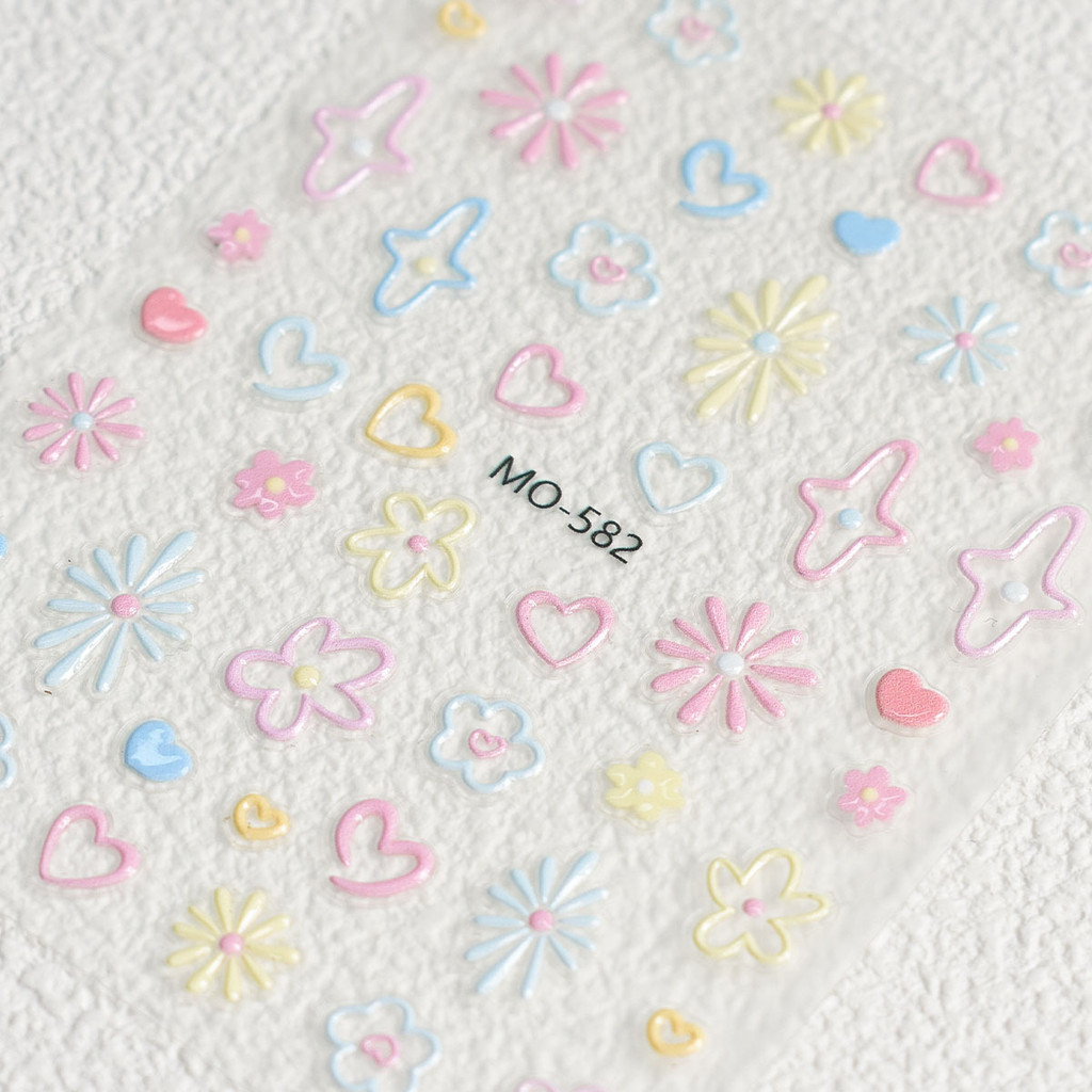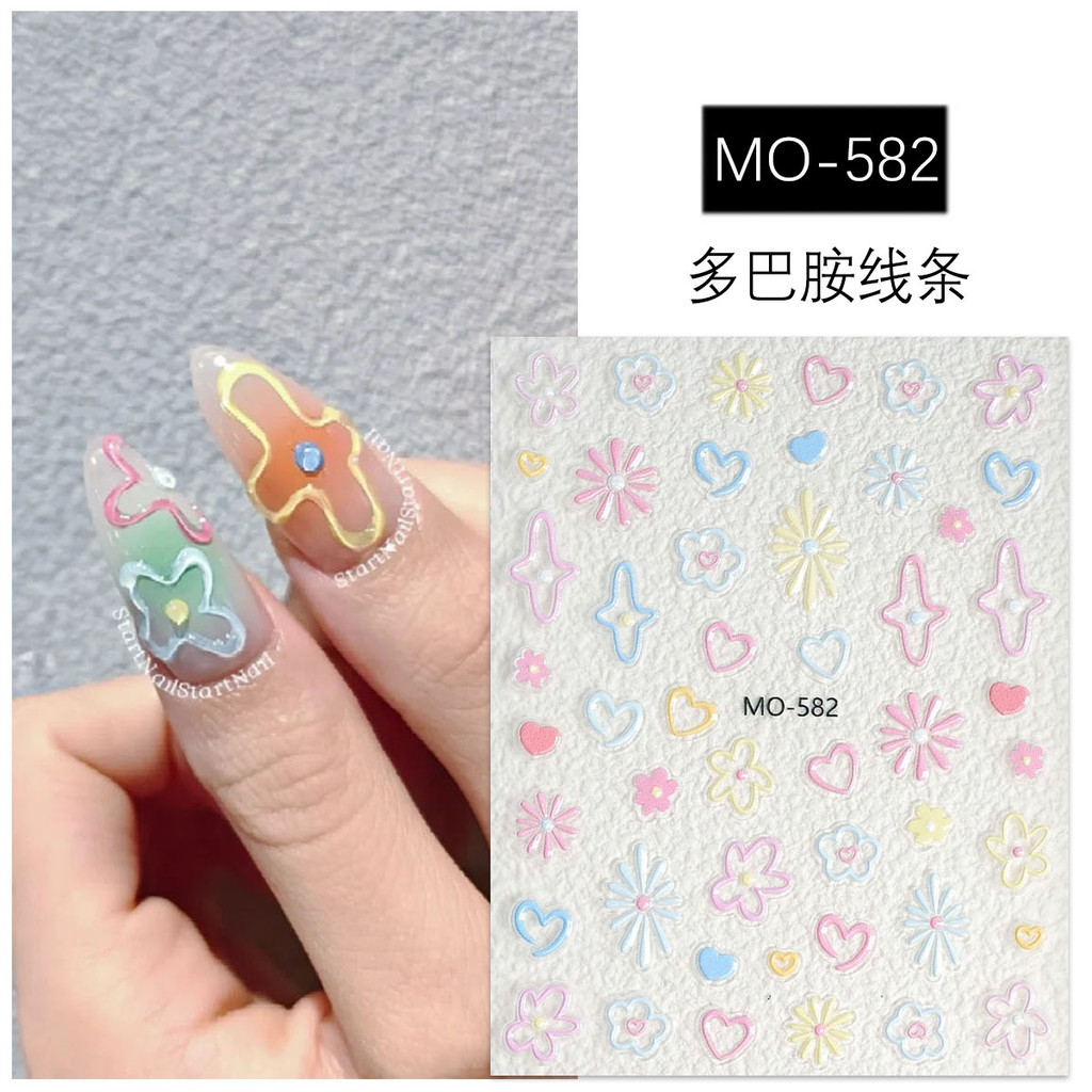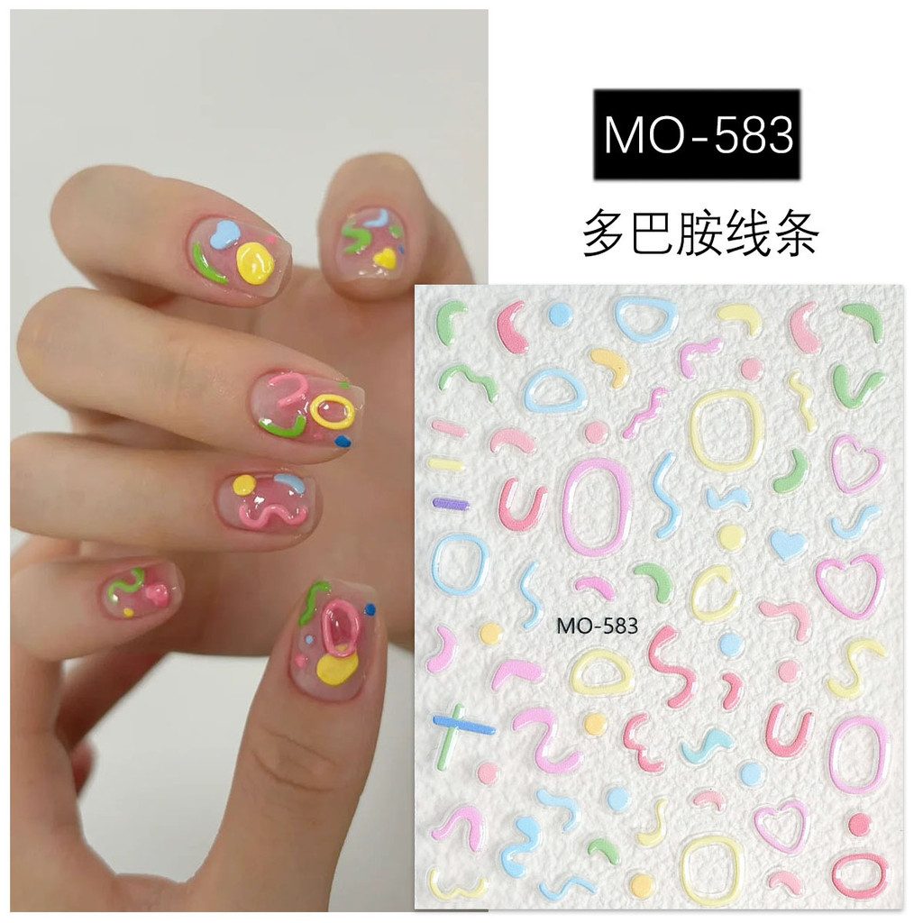 Dopamine Line 5D Jelly Nail Stickers Love Butterfly Graffiti Candy Color อเนกประสงค์ตกแต่งเล็บ DIY สติ๊กเกอร์