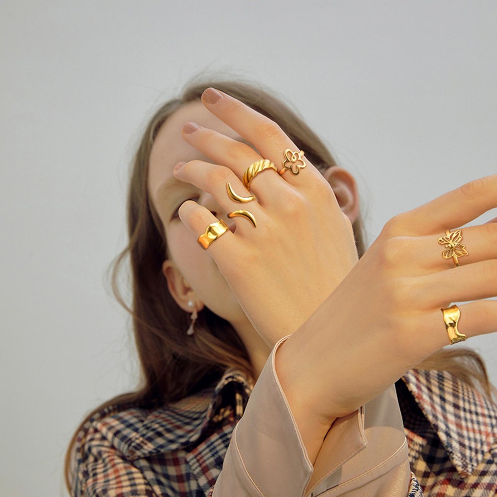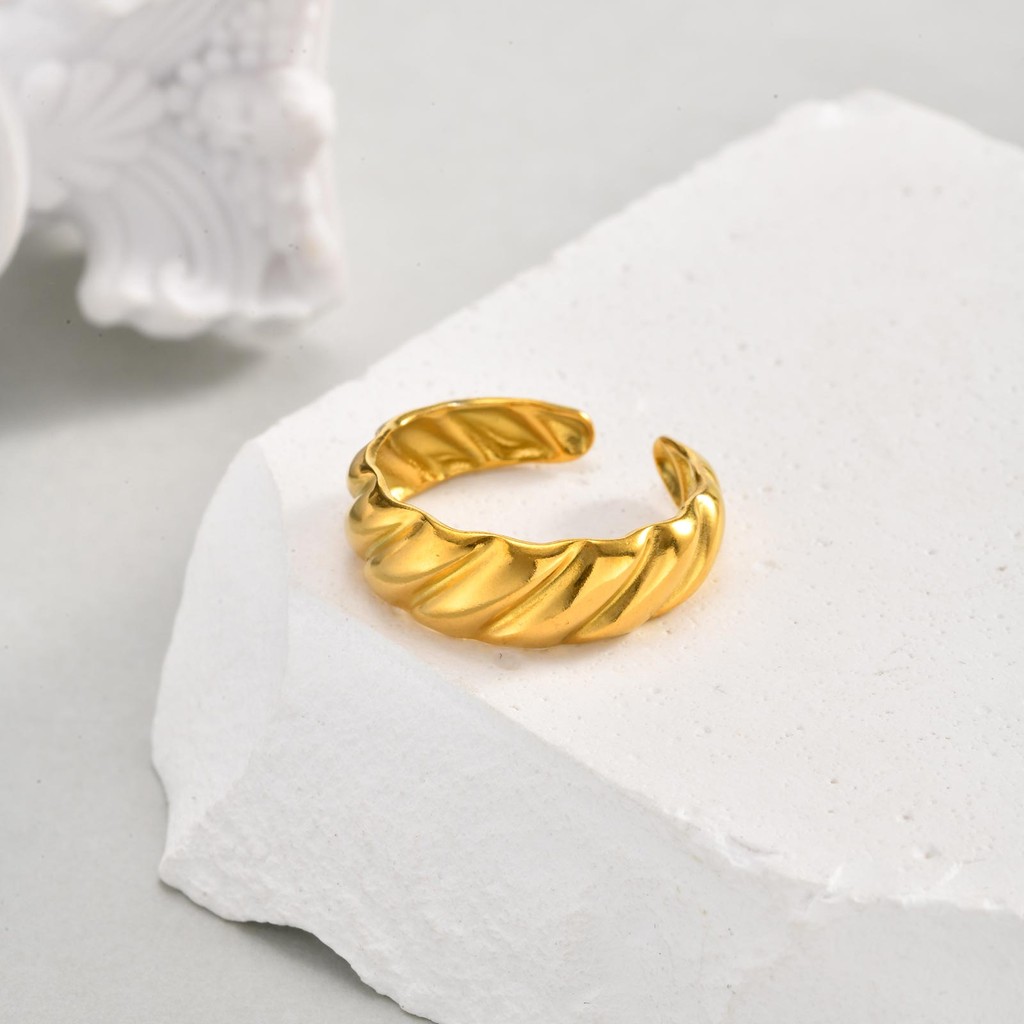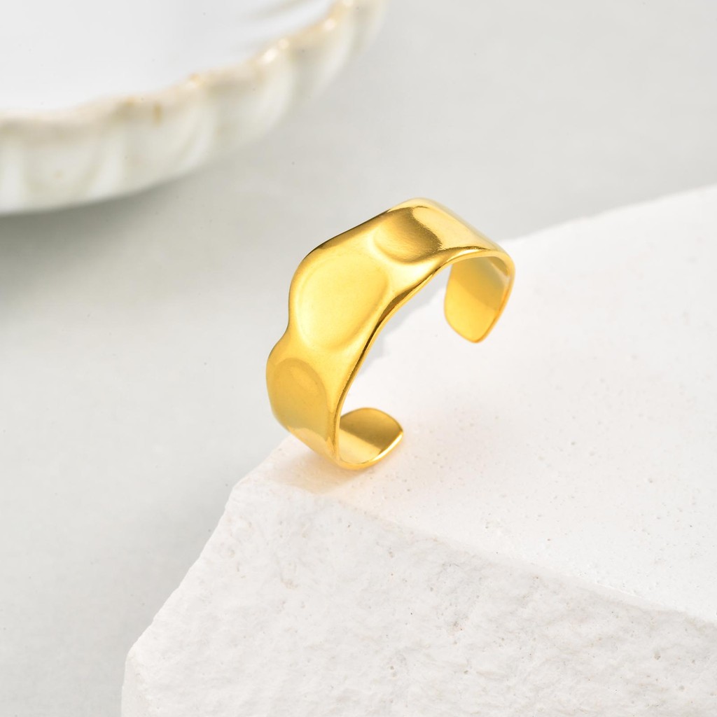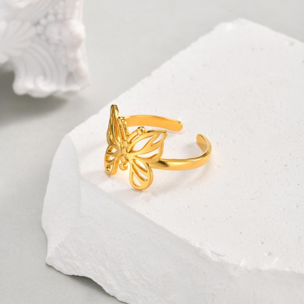 Vnox ทองไม่สม่ําเสมอเรขาคณิต Hollow ผีเสื้อโบว์เปิดแหวนผู้หญิง,สแตนเลส Non Tarnish Chunky แหวน,แฟชั่นเครื่องประดับของขวั