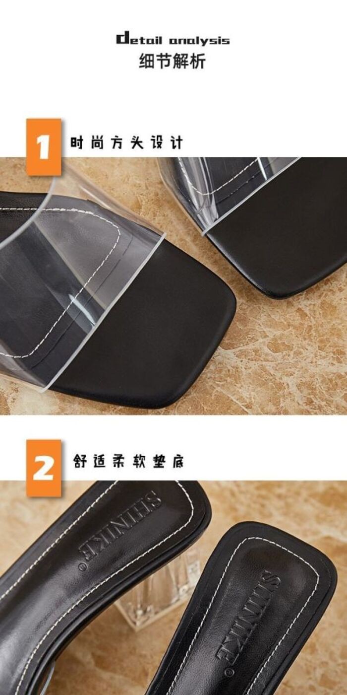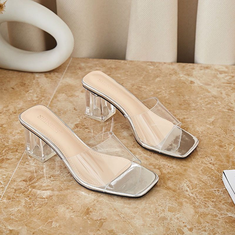 รองเท้าแตะส้นสูงแบบโปร่งใสและประดับคริสตัลสำหรับผู้หญิงในฤดูร้อน