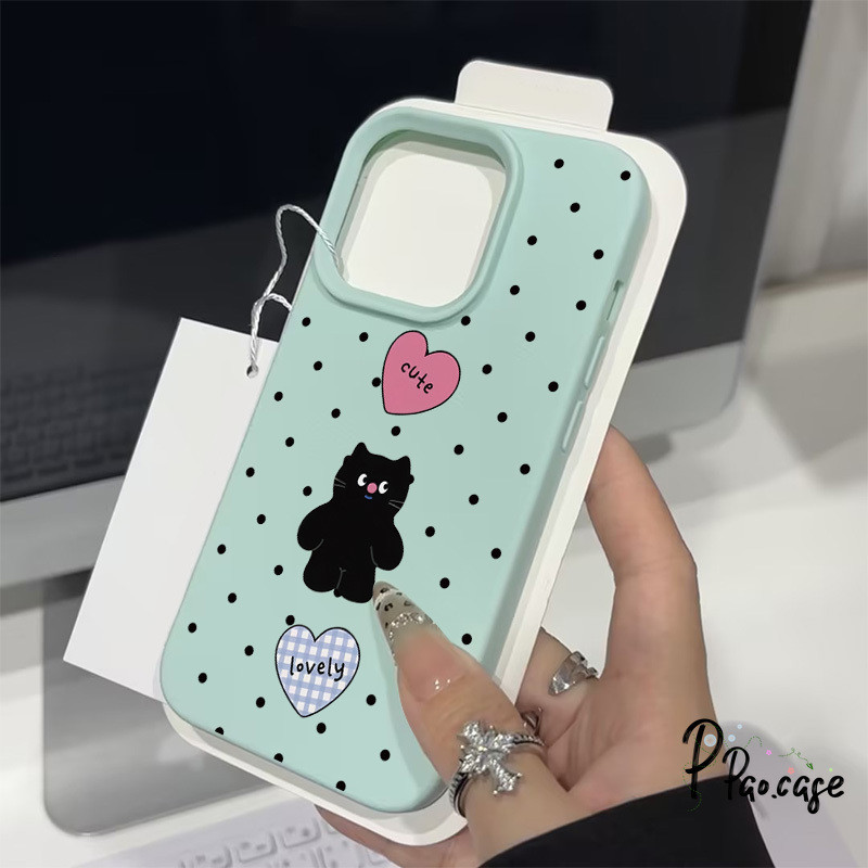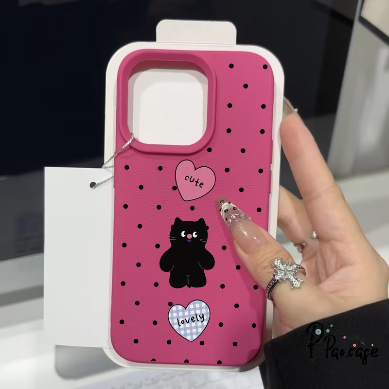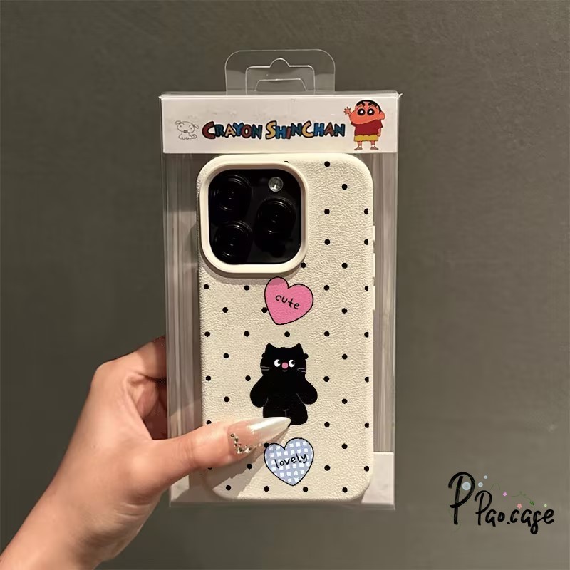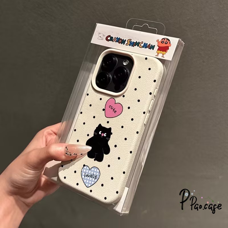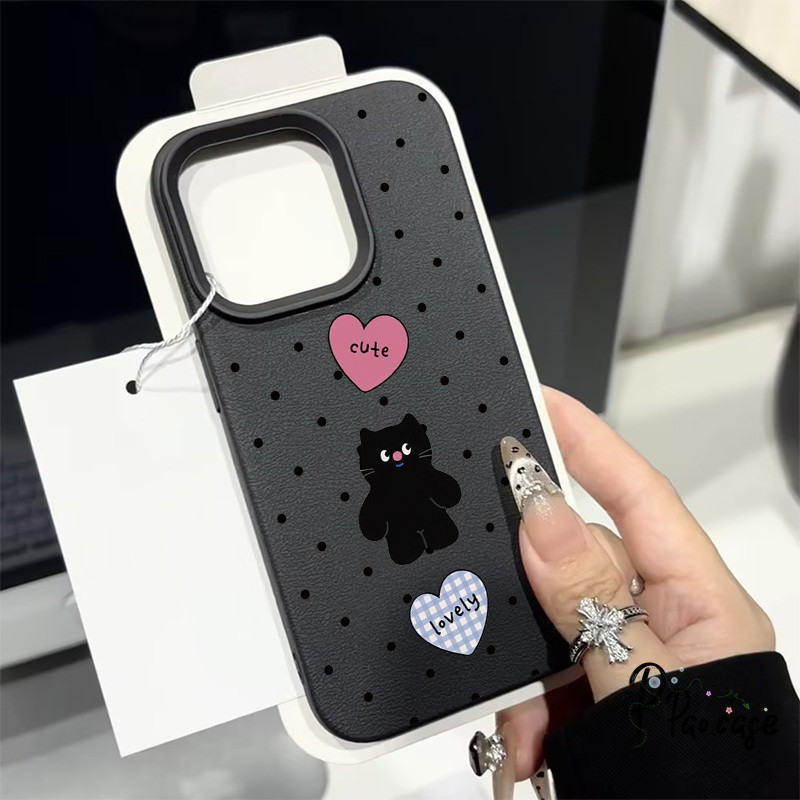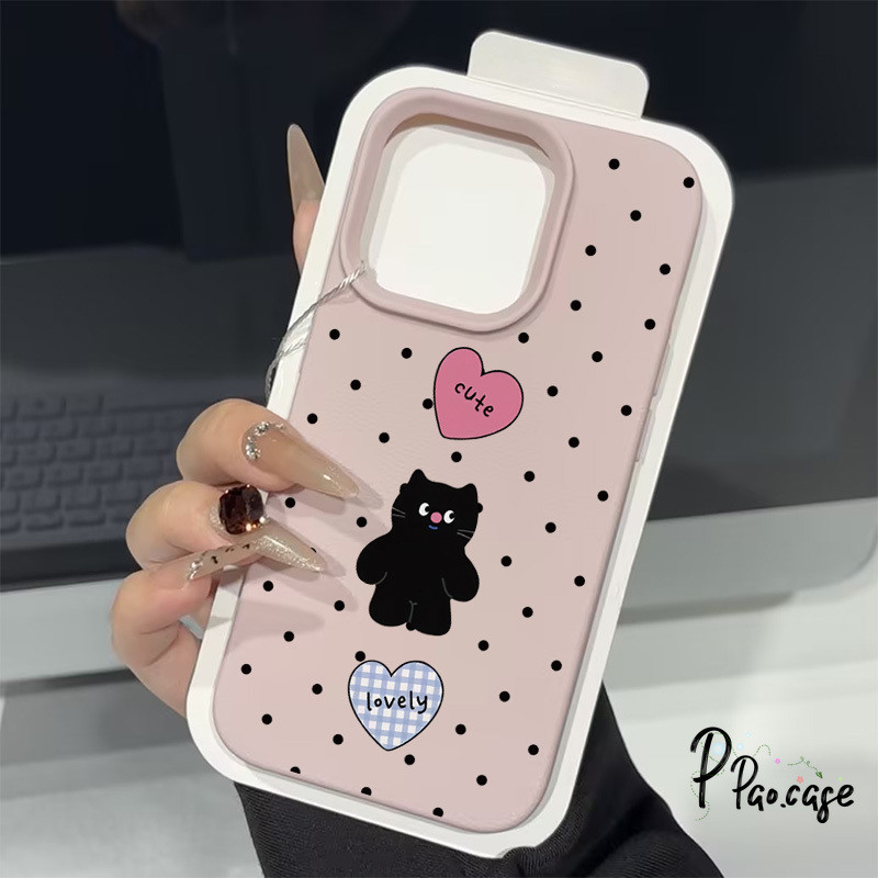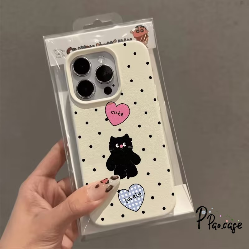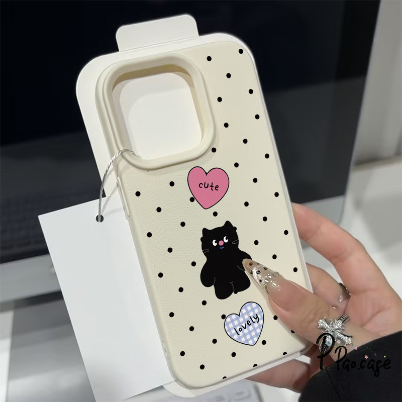 เคสไอโฟน 16 สำหรับ IPhone 16Plus 11 16 13 15 12 14 Pro Max XR XS X Max 16 7 15 8 Plus เคสหนังลายจุดสีดำลายกราฟฟิตี้