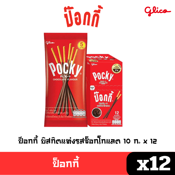 - ป๊อกกี้ บิสกิตแท่งรสช็อกโกแลต 10 ก. x 12
