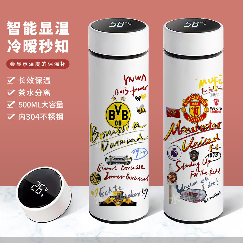 แก้วเก็บความร้อน/ขวดน้ำสแตนเลสความจุ 304 สำหรับฟุตบอลแมนเชสเตอร์ซิตี้ เชลซี – นักเรียน U17 500 จอแสดงอุณหภูมิอัจฉริยะ 18 Royal PR3C