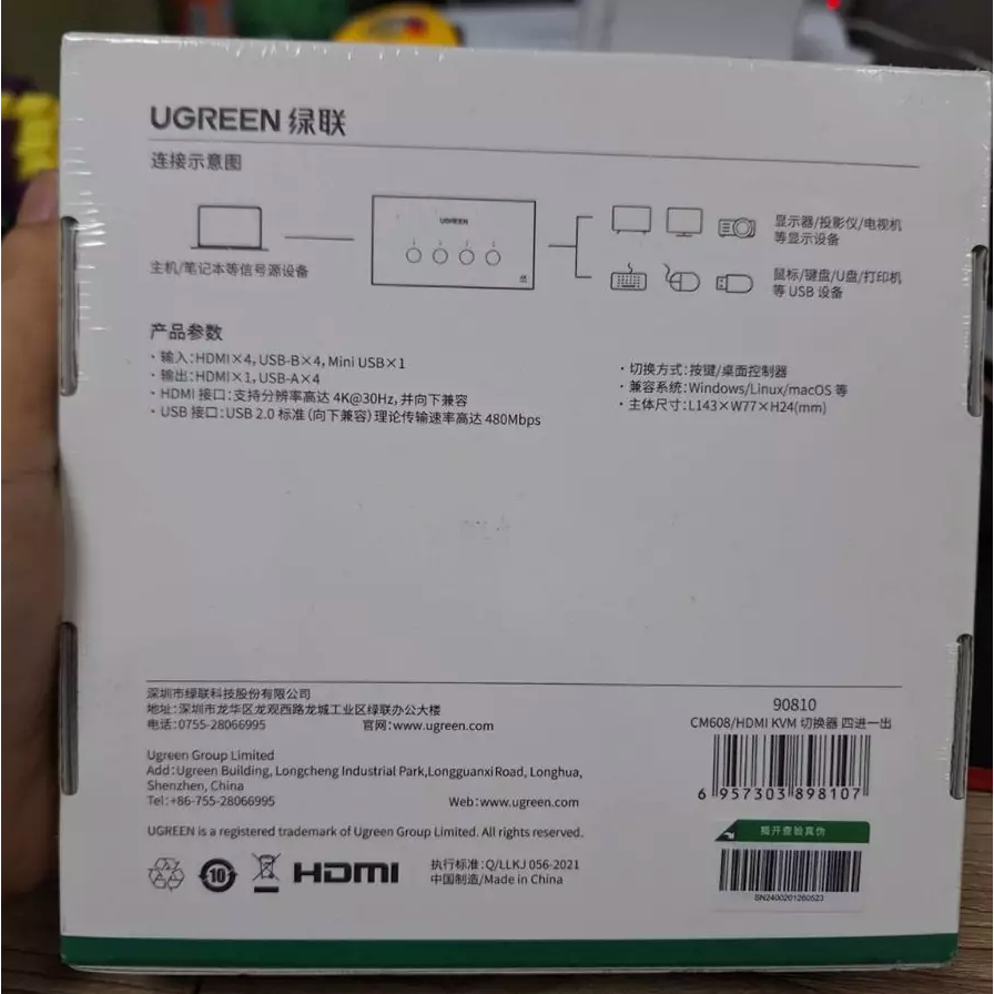 พร้อมส่ง UGREEN (90810) 4 IN 1 OUT KVM HDMI SWITCH CM608